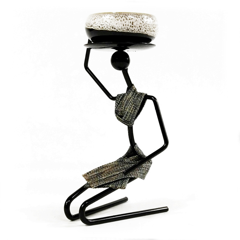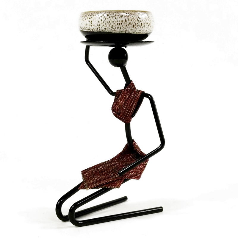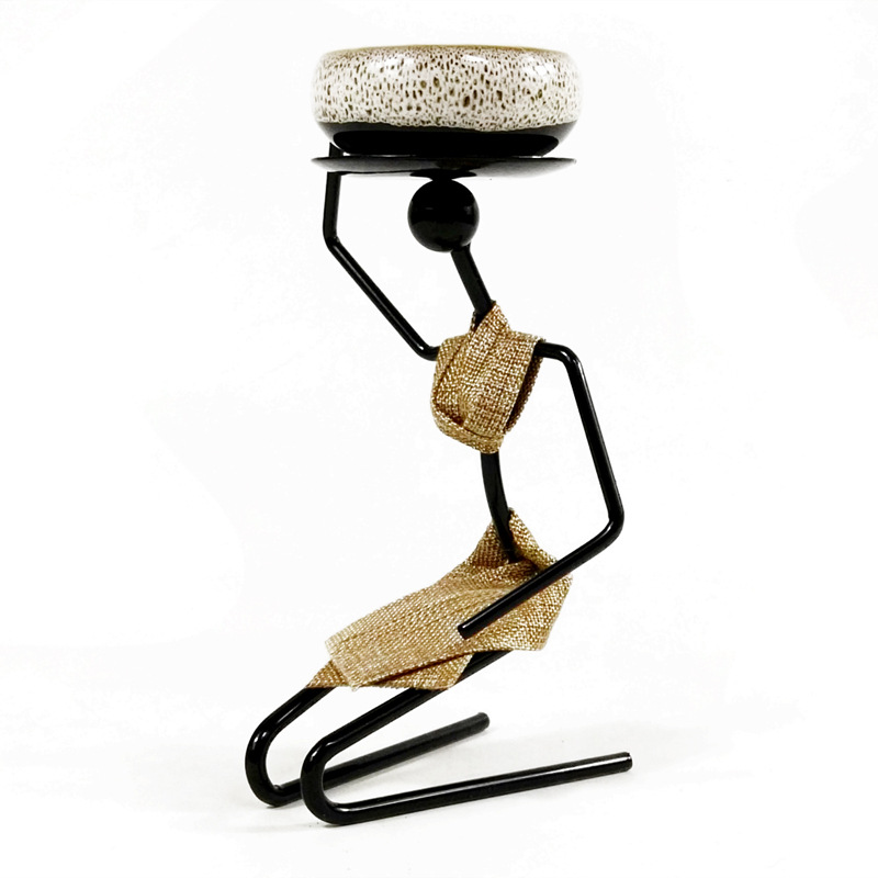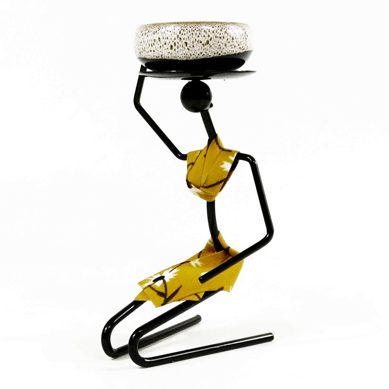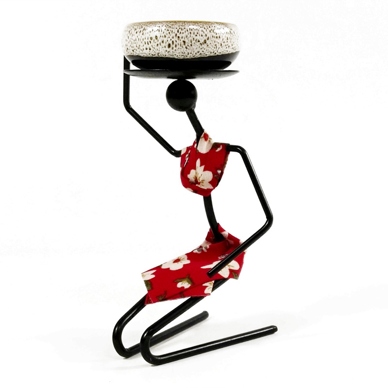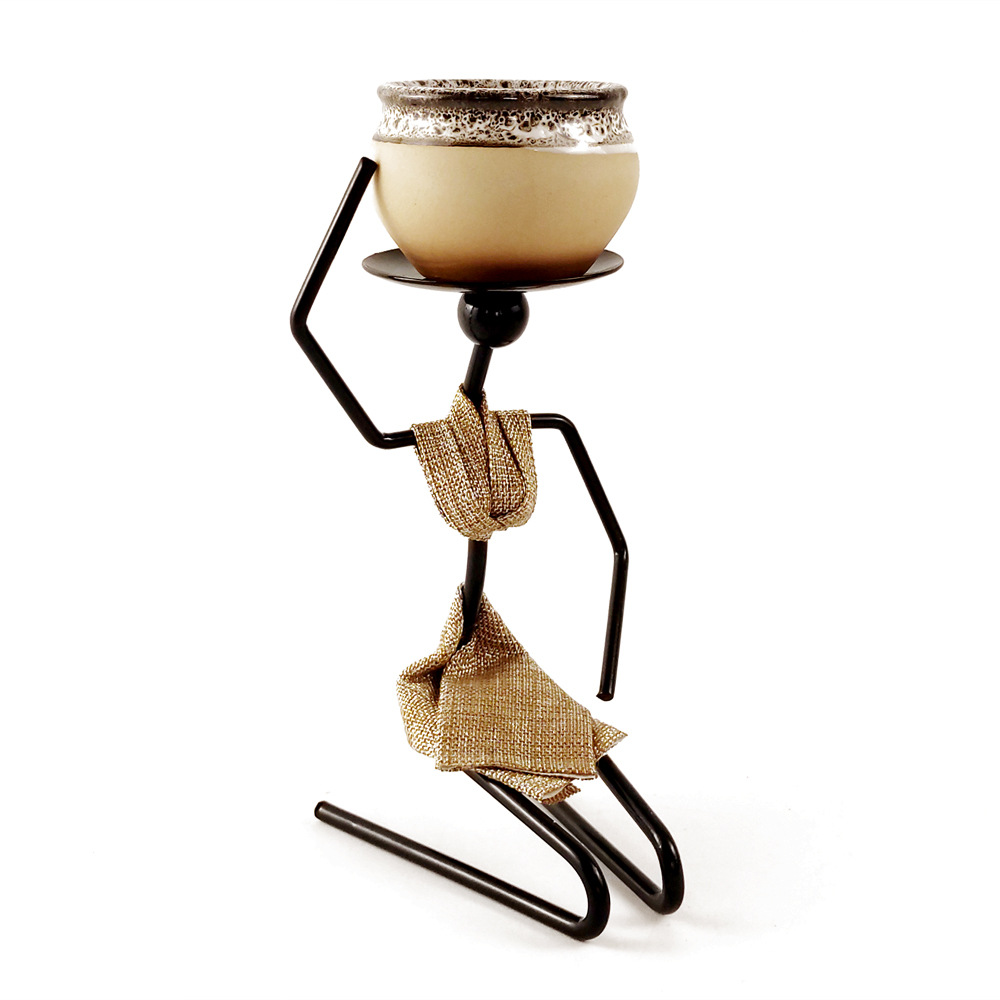 田园迷你多肉花盆器铁艺人盆栽架跪姿女孩室内桌面摆件
