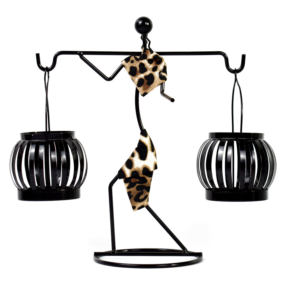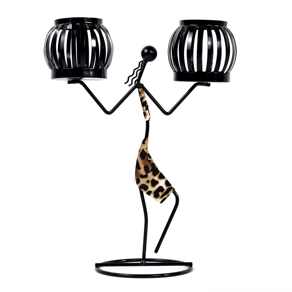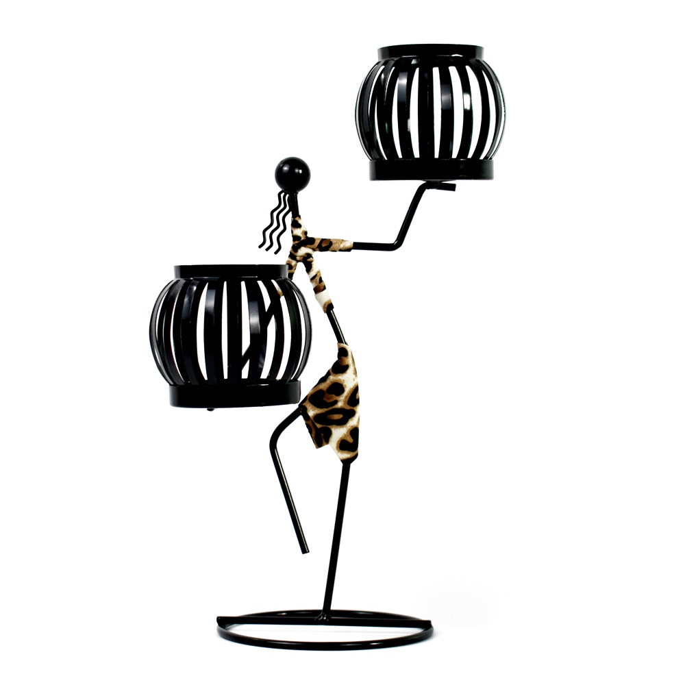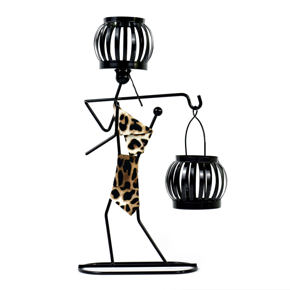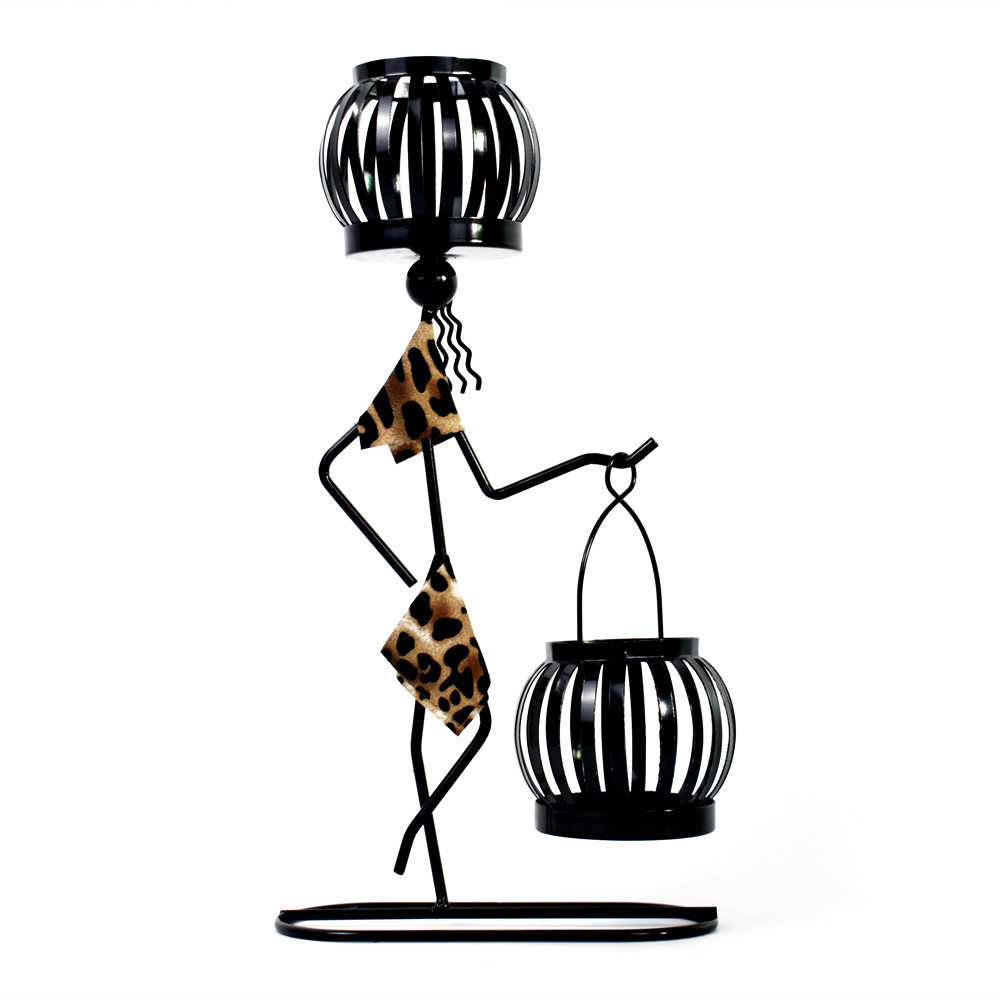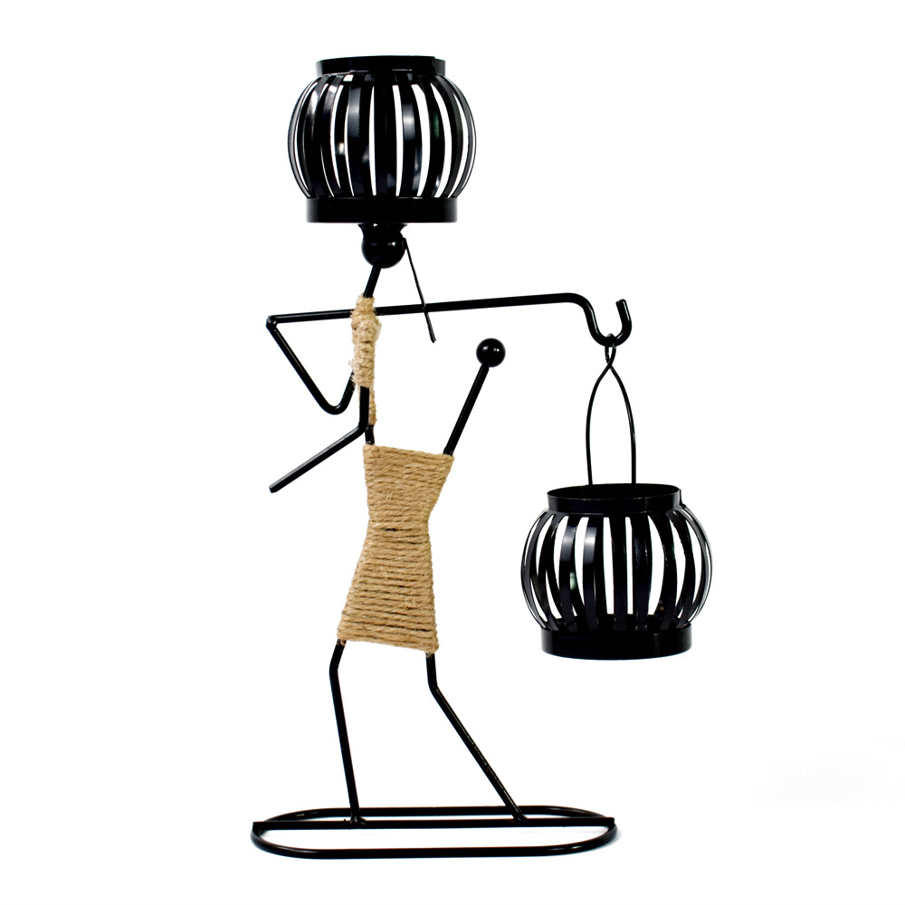 田园双灯笼复古工艺铁人烛台摆件烛光晚餐气氛布置道具