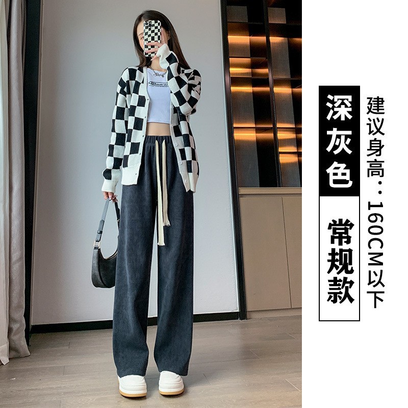 2023春秋薄款加绒阔腿裤女秋冬新款休闲裤高腰垂感直筒拖地欧棉绒