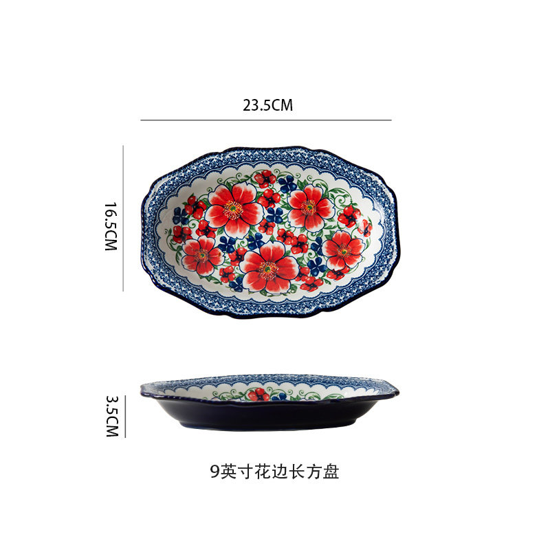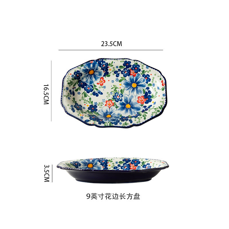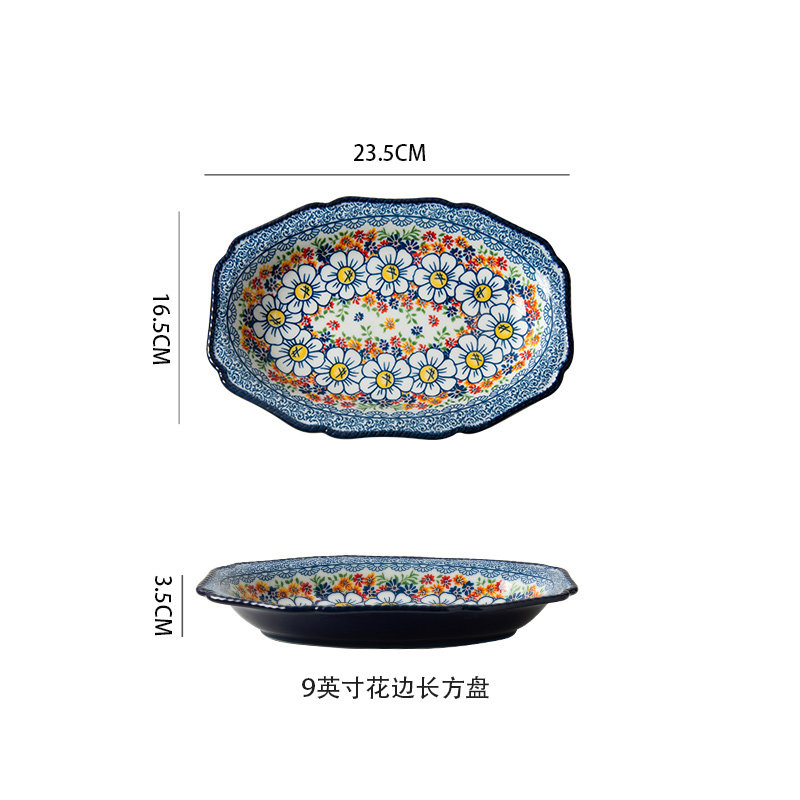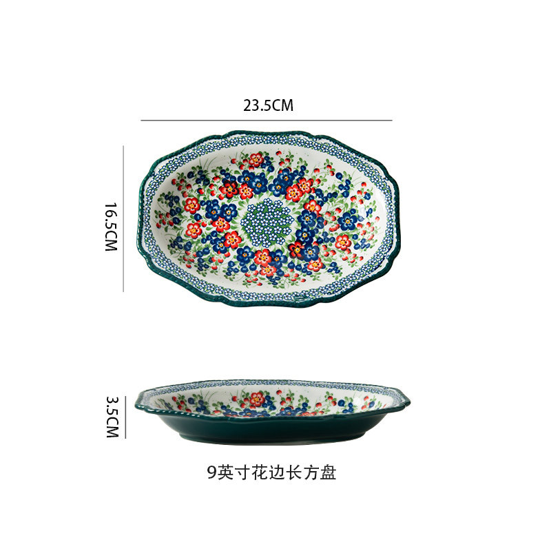 波兰陶瓷9寸长方形盘子寿司盘家用餐具菜盘西餐盘鱼盘