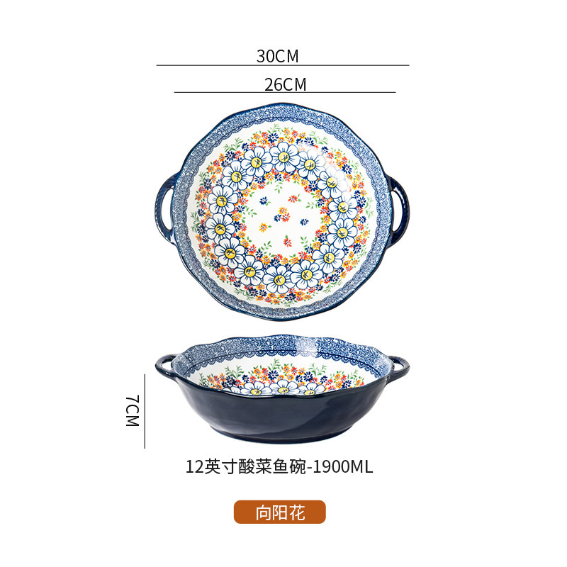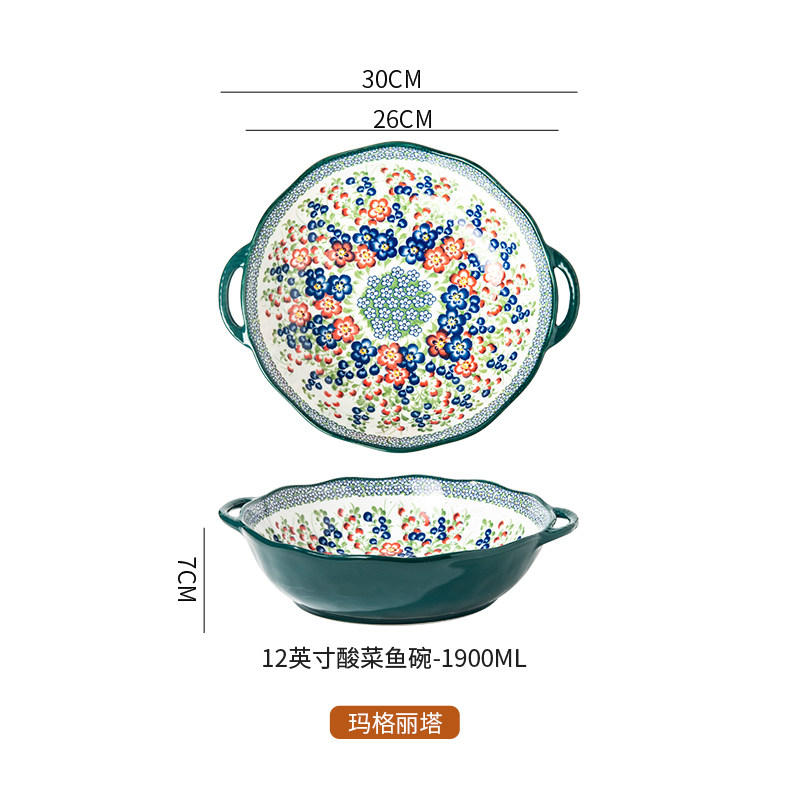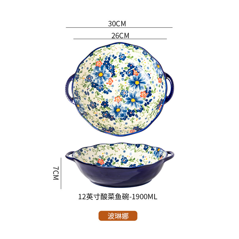 波兰彩酸菜鱼大盆碗家用大号陶瓷双耳汤碗水煮肉片毛血旺