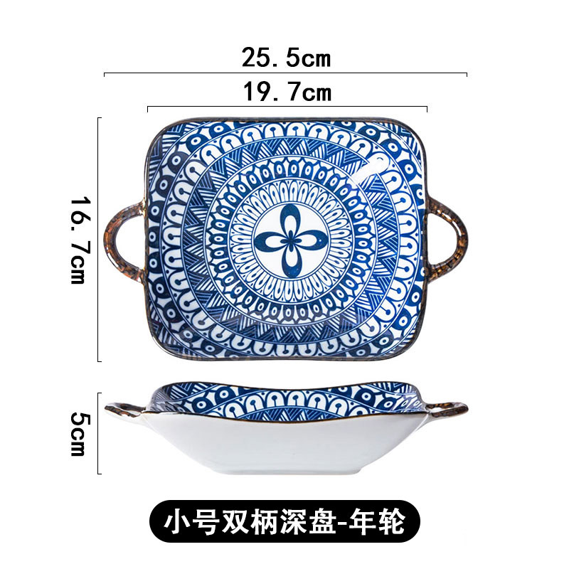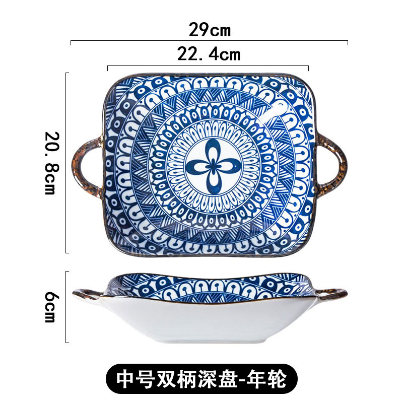 日式和风双耳陶瓷盘子菜盘家用汤盘餐具牛排西餐餐盘