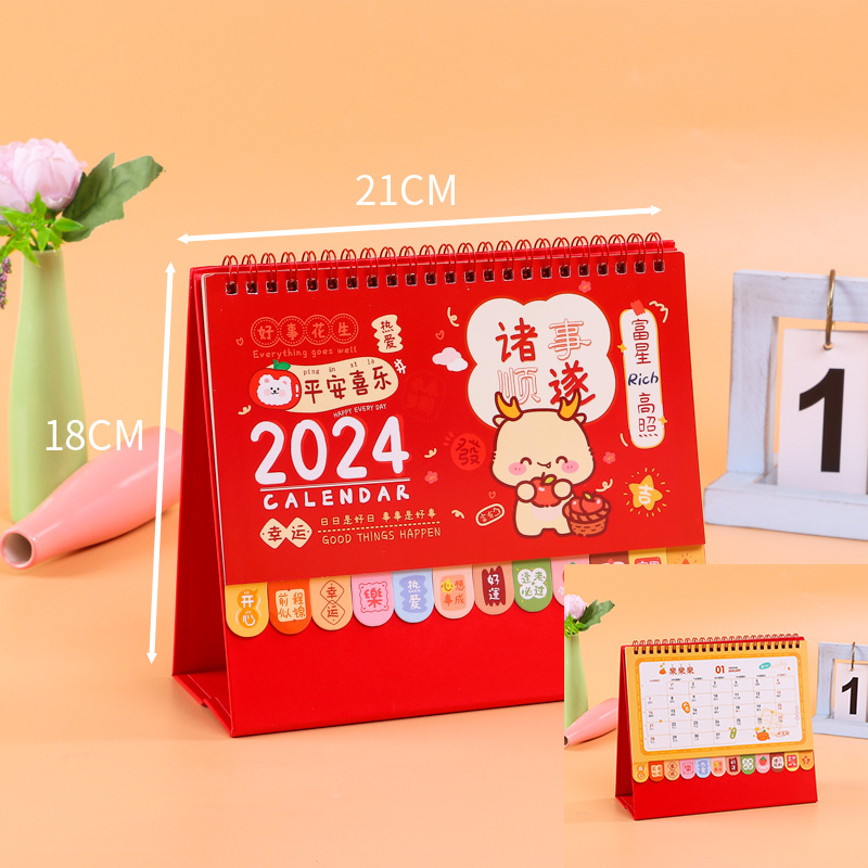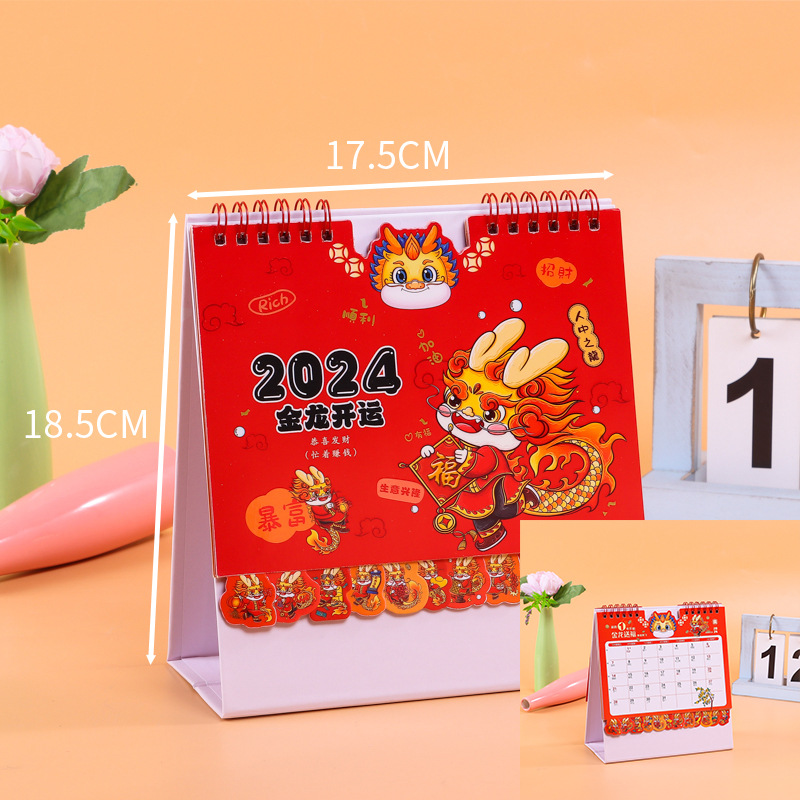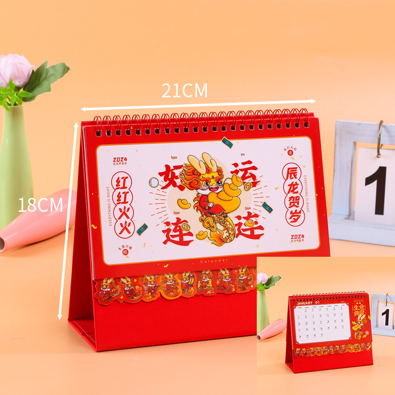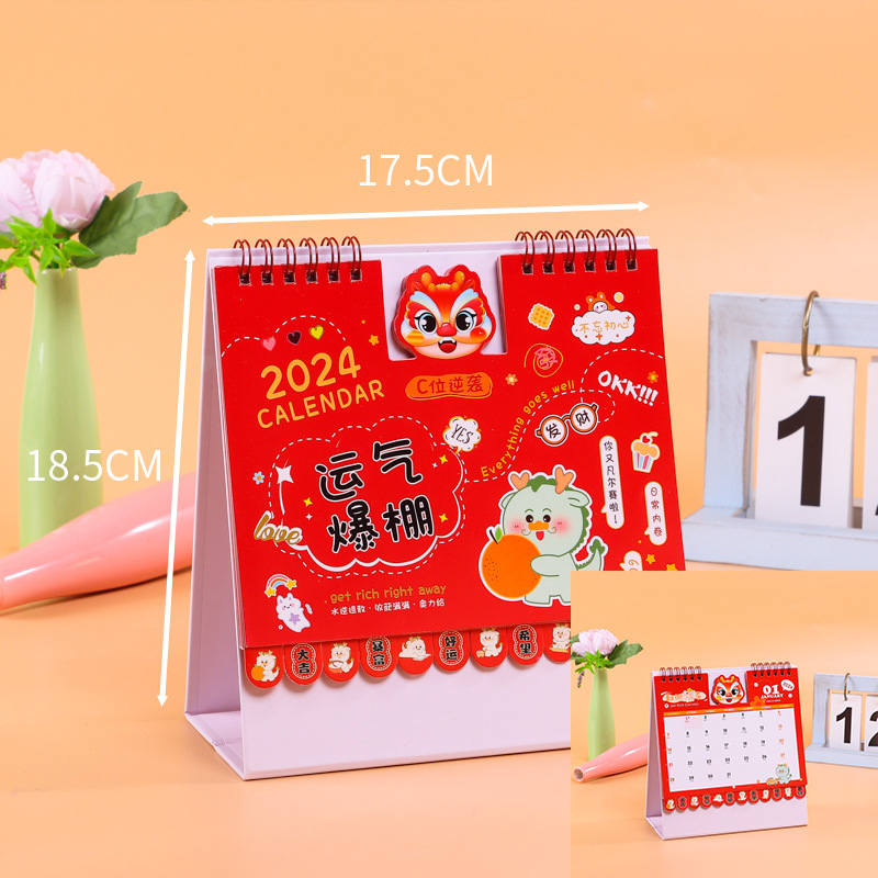 2024龙年国潮台历定制 简约卡通桌面日历 广告企业创意月历定做