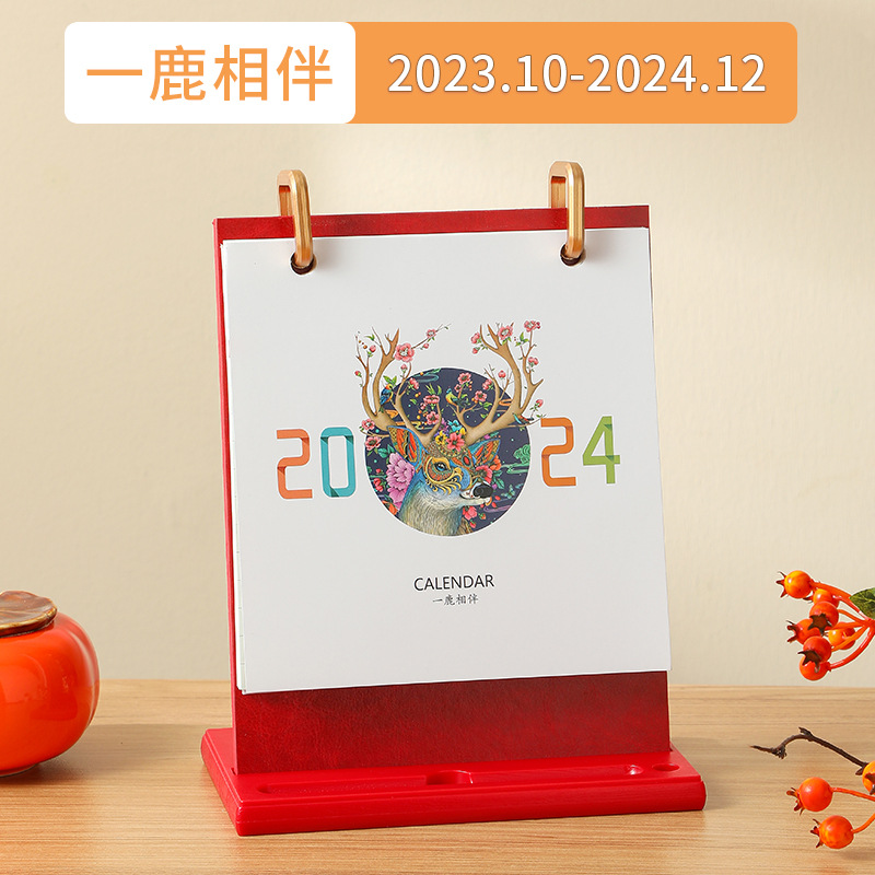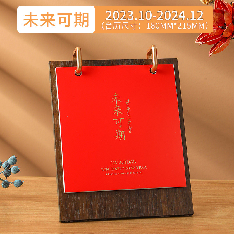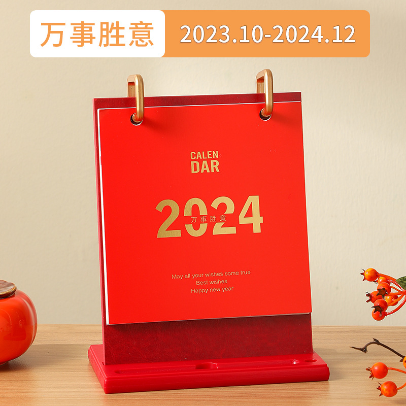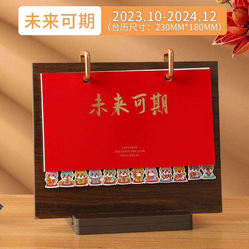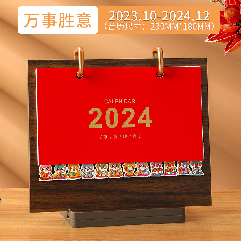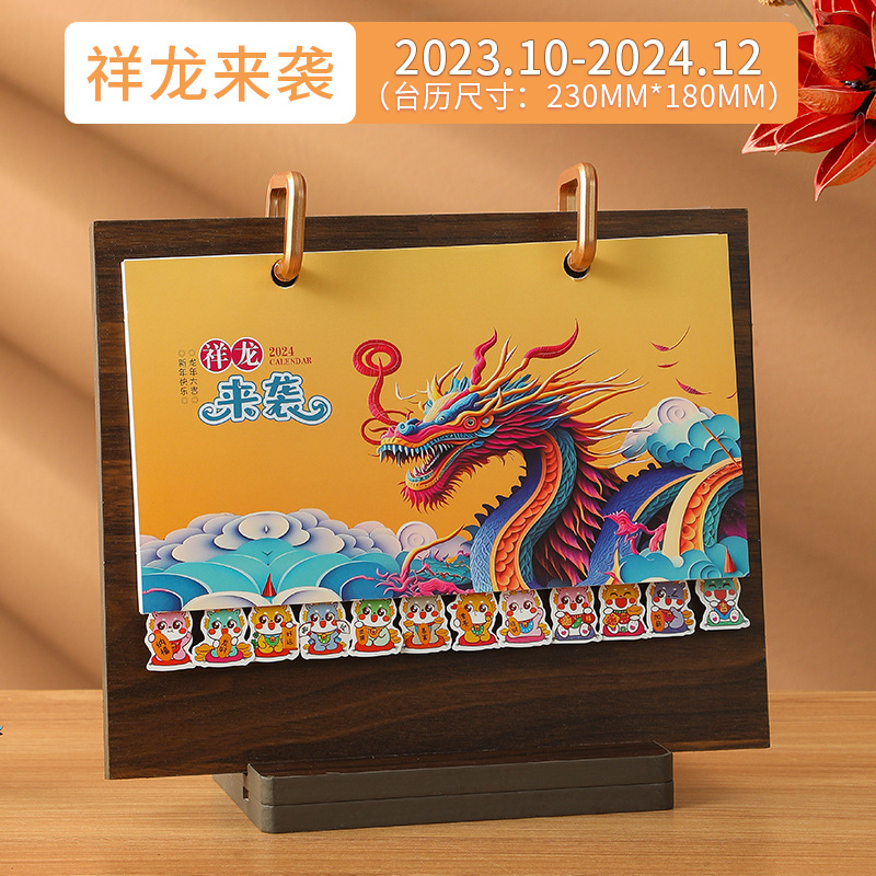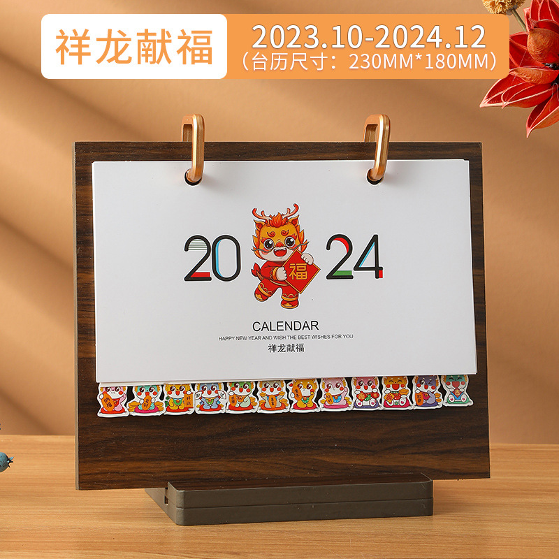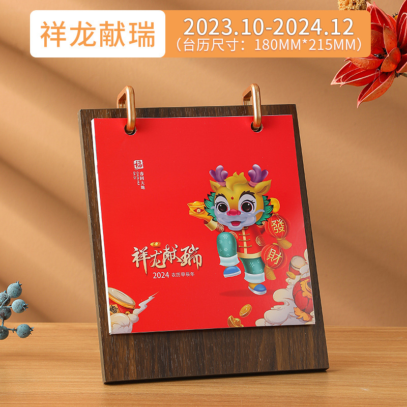 2024龙年台历现货批发木质线圈日历桌面创意摆件商务计划本子定制