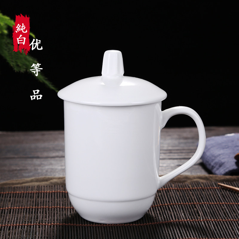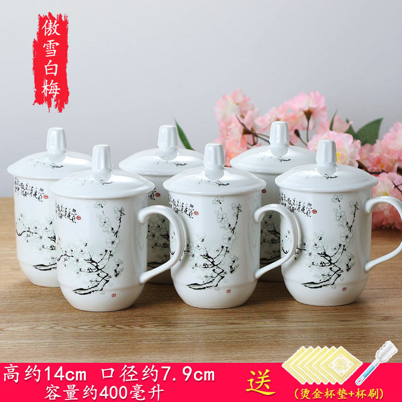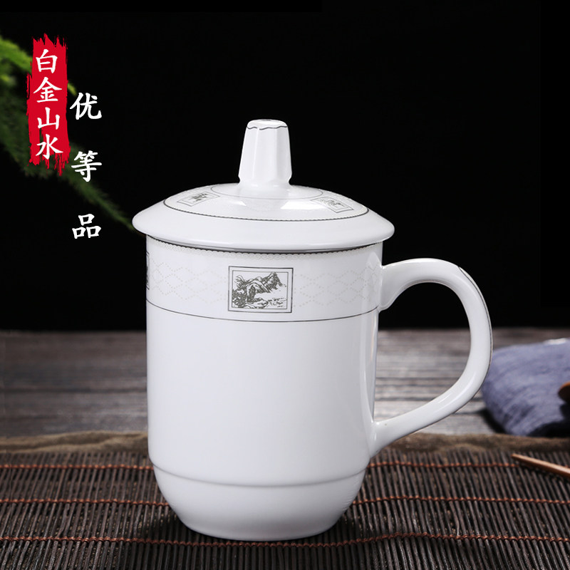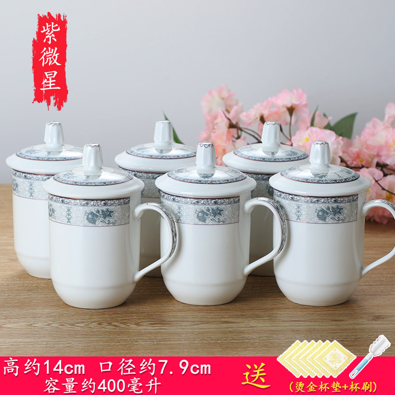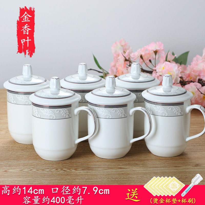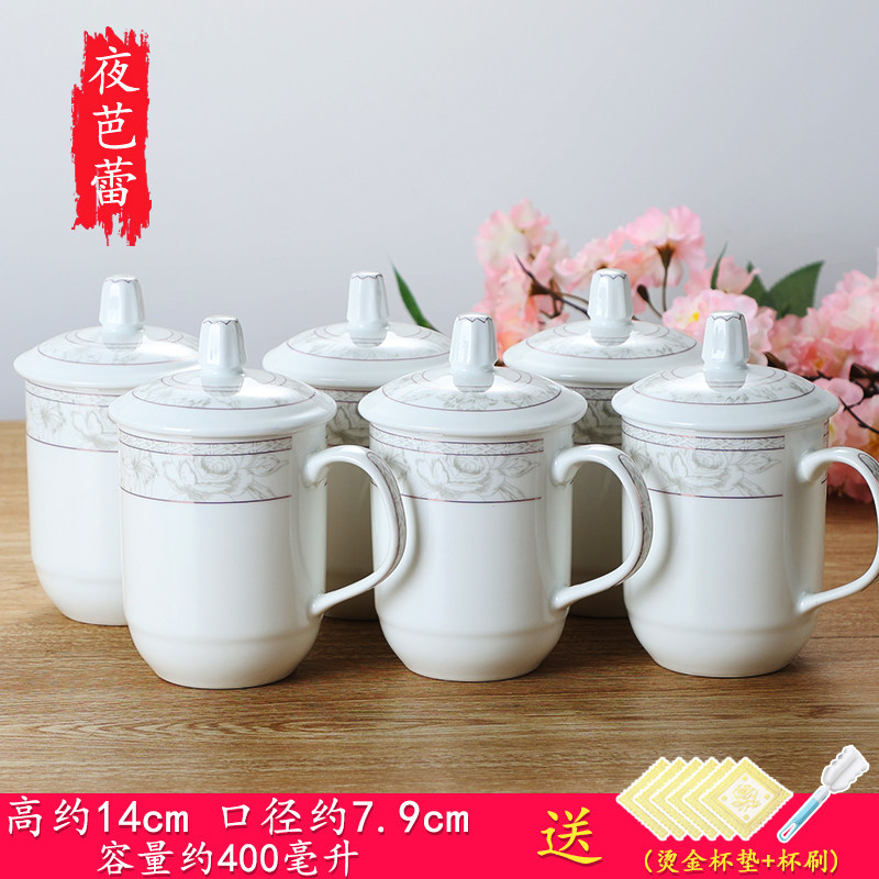 陶瓷杯子带盖办公杯会议室泡茶杯陶瓷酒店家用宾馆水杯