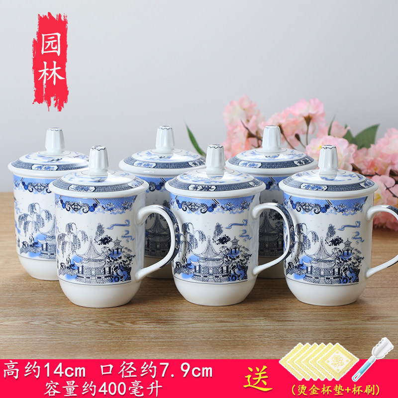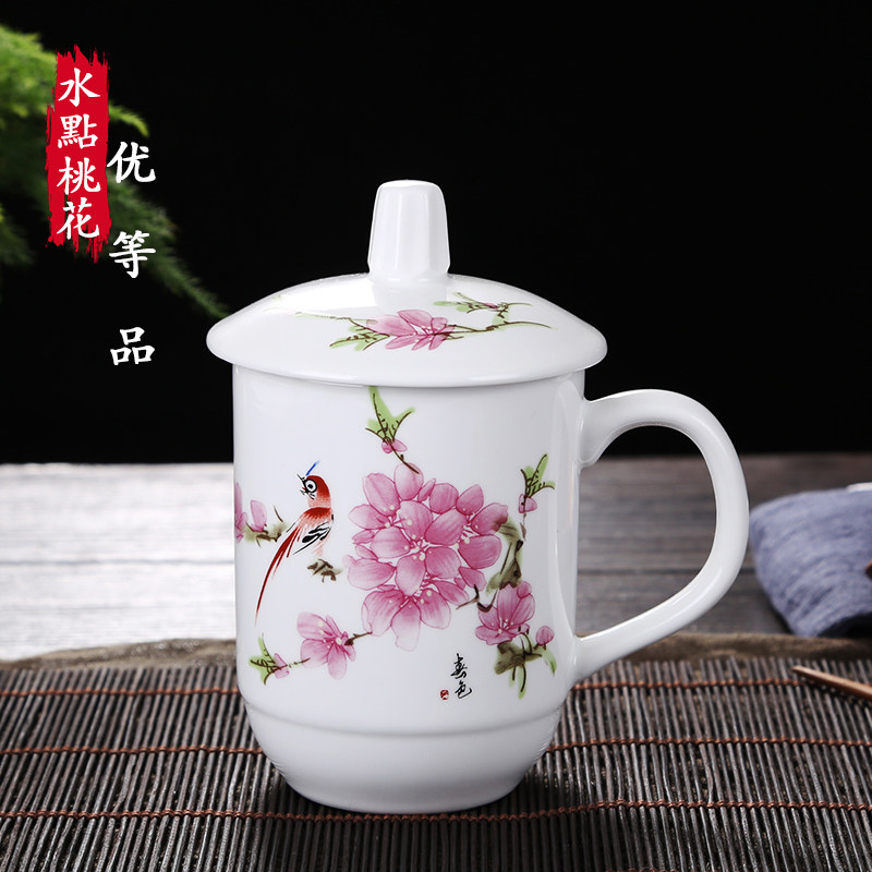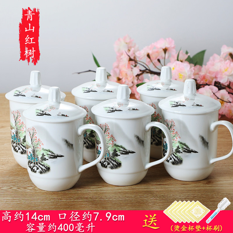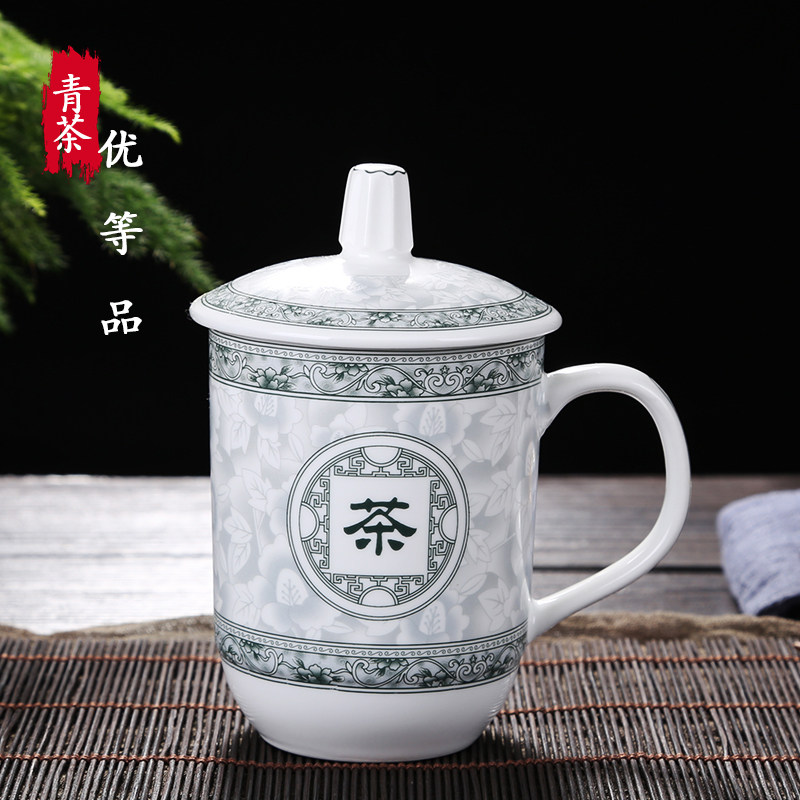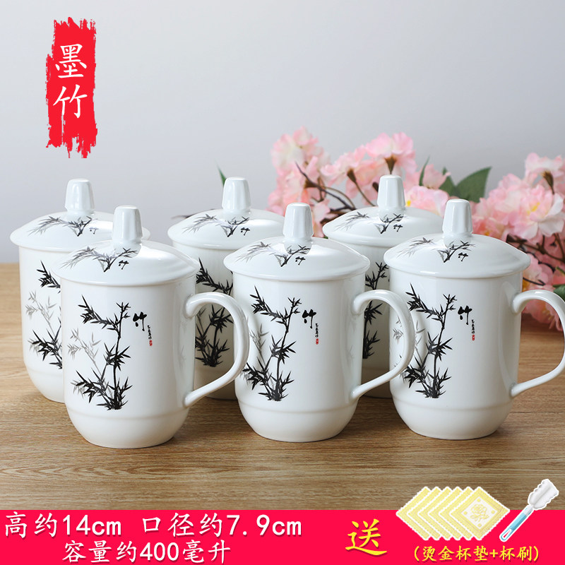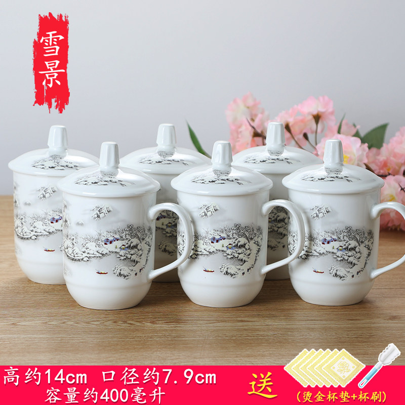 陶瓷杯子带盖办公杯会议室泡茶杯陶瓷酒店家用宾馆水杯