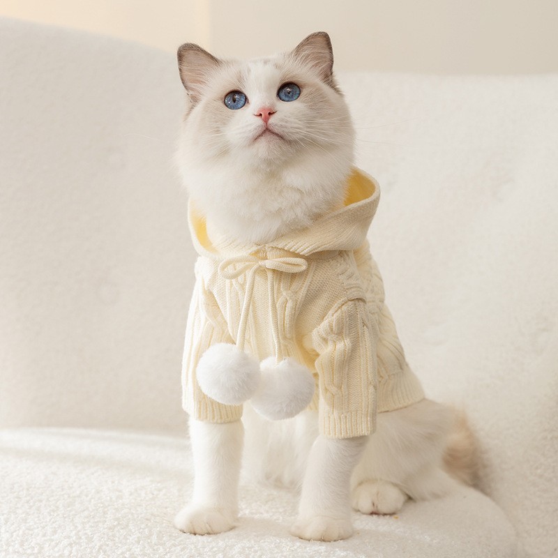 米色毛球连帽