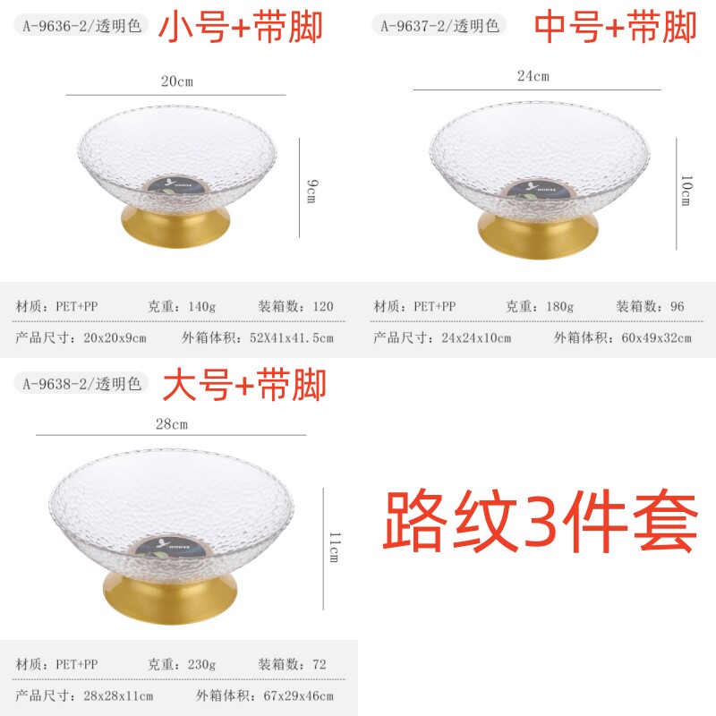 PET糖果盘【小,中,大号路纹盘+底座】3件套