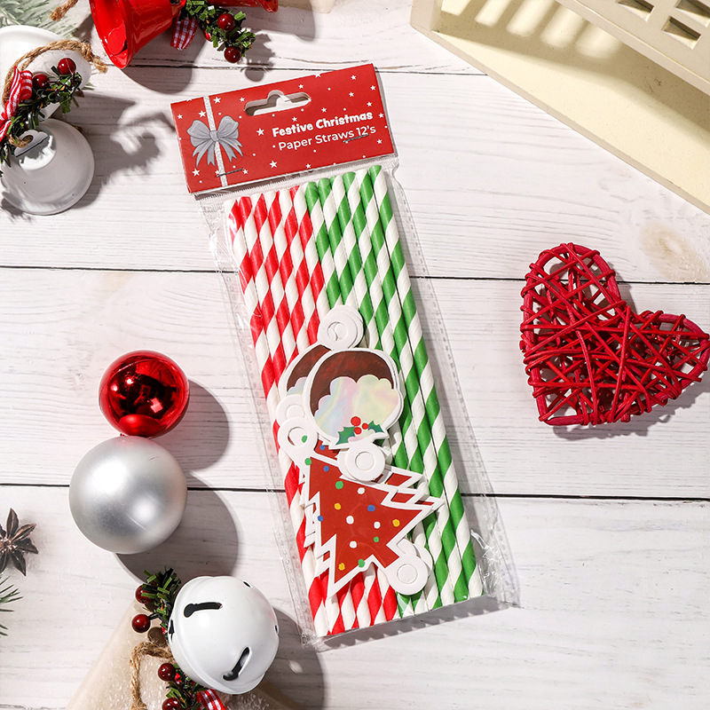 新款跨境圣诞节派对装饰吸管圣诞雪人老人等纸卡吸管插件厂家批发