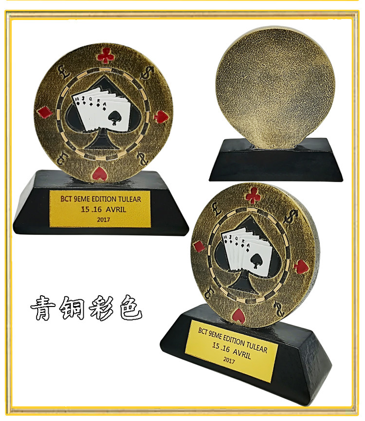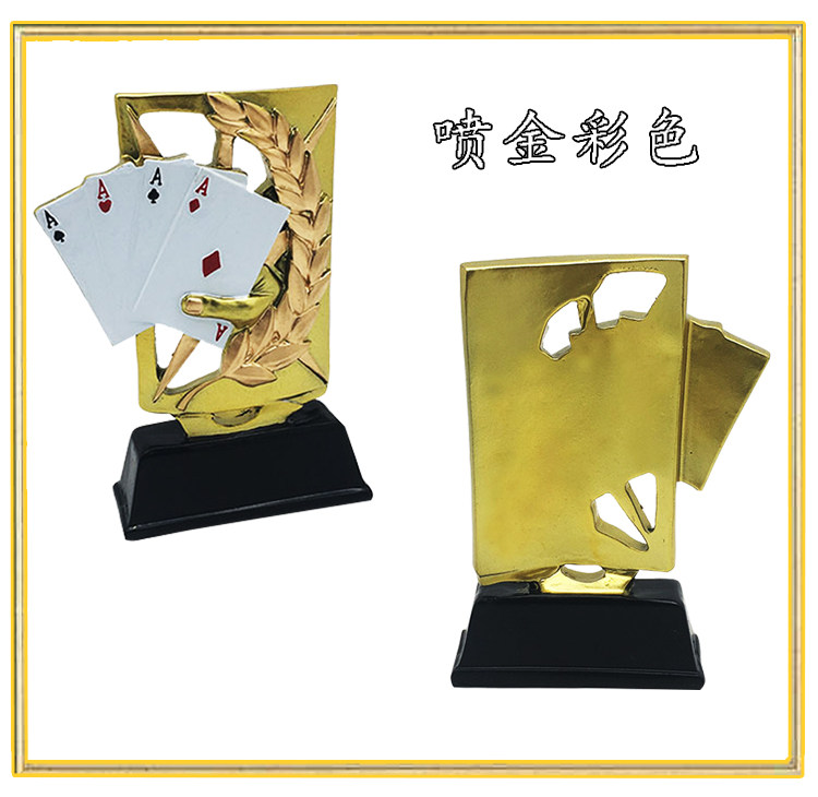 德州扑克牌奖杯比赛专用金银铜扑克牌比赛奖杯送礼个人收藏纪念品