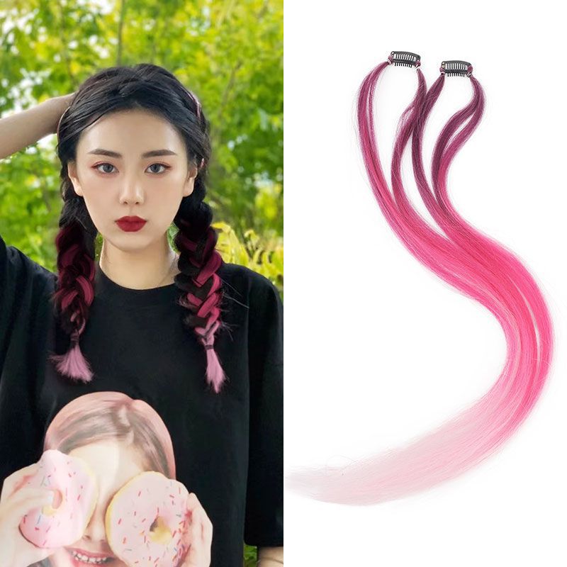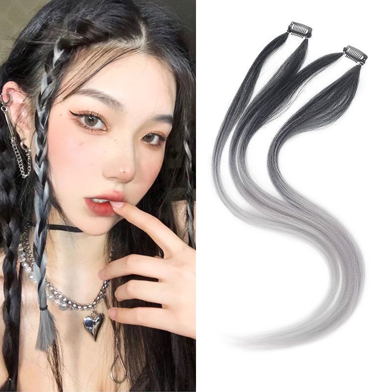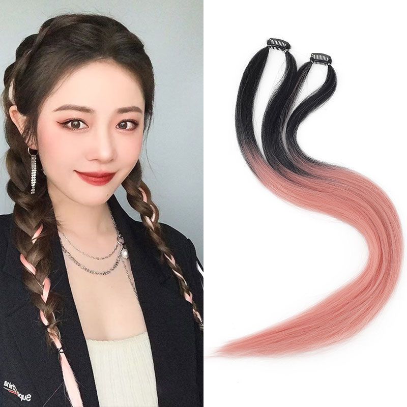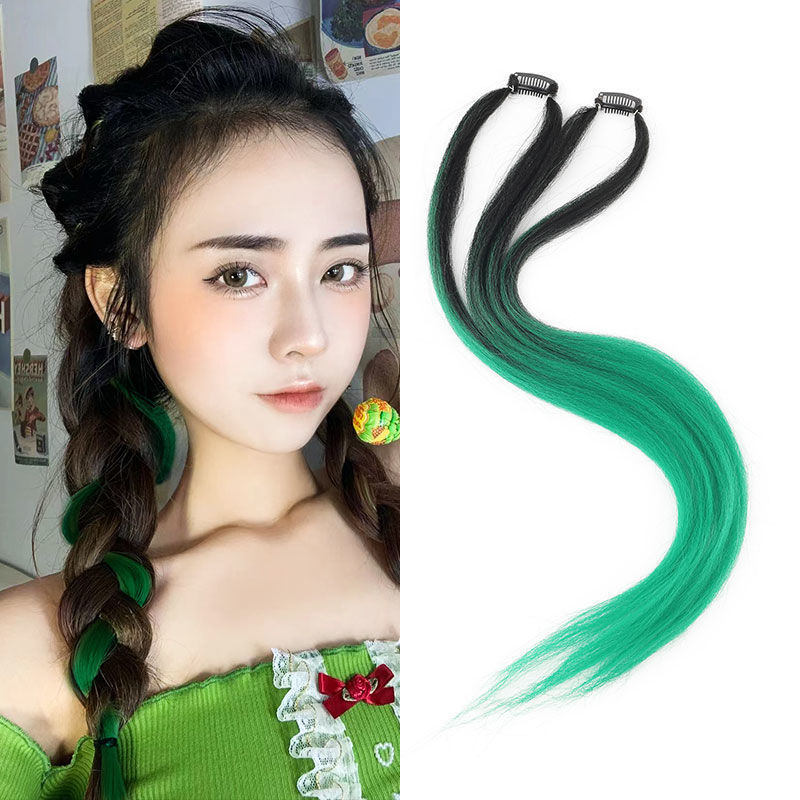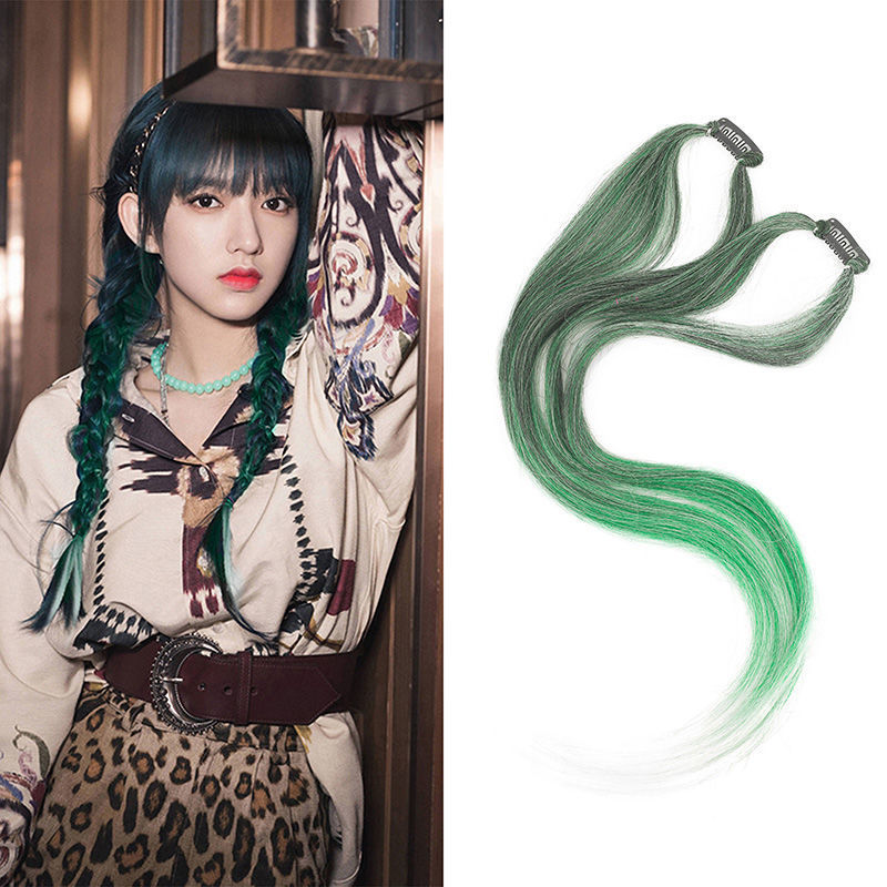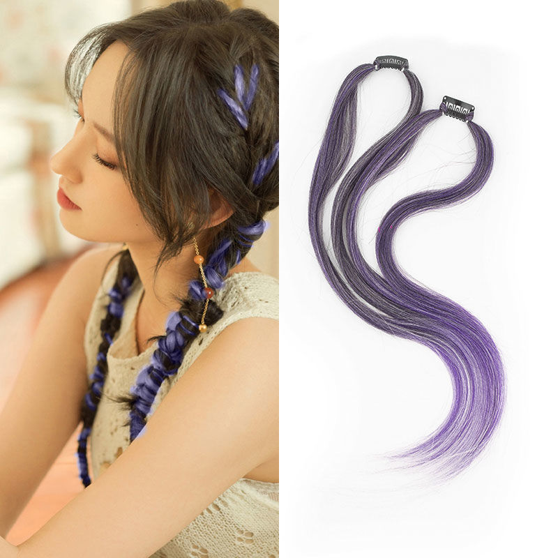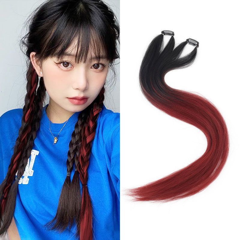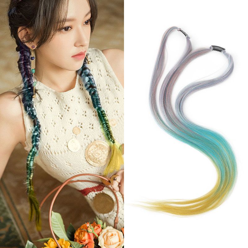 挂耳染假发片女挑染一片式无痕编发绳马尾脏辫麻花彩色脏辫彩绳