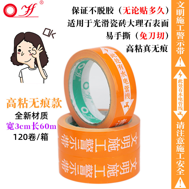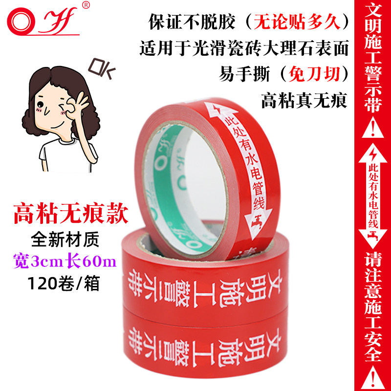 装修无痕水电管线路水电标识胶带警示胶带安全保护标示定制彩色胶