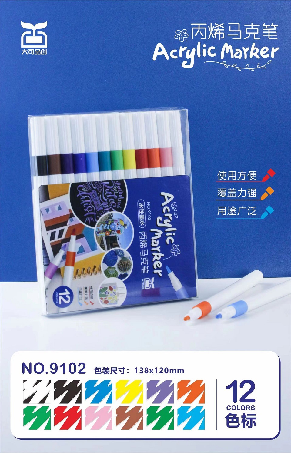 72色丙烯马克笔DIY绘画水性油漆彩笔儿童涂鸦记号颜料丙烯笔批发