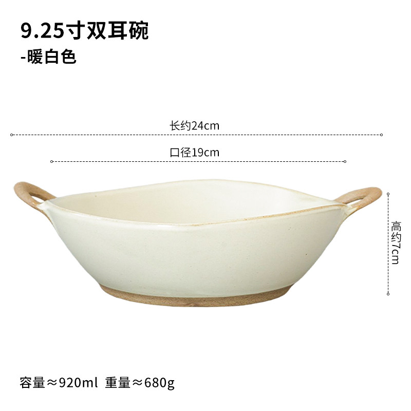 简色双耳汤碗家用日式拉面碗螺蛳粉复古陶瓷微波炉用碗