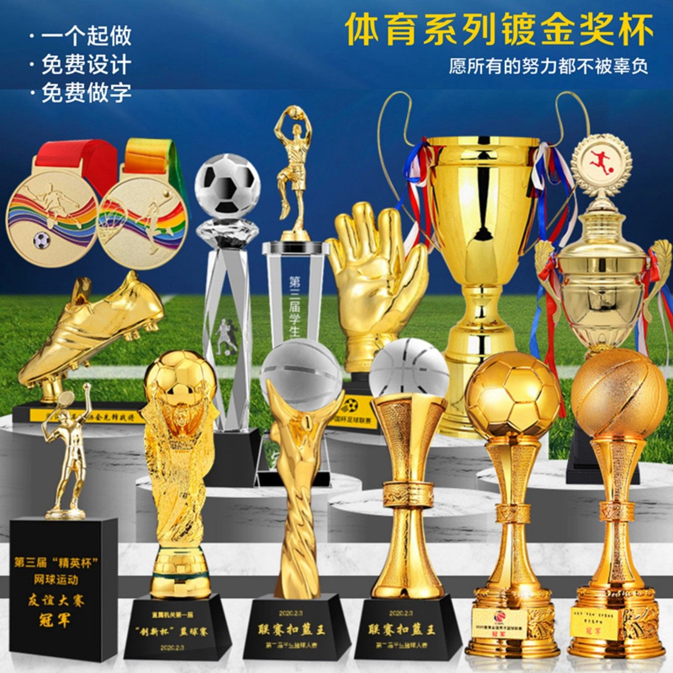 金属奖杯定制定做便宜小纹绣体育运动水晶篮足排球比赛金银铜奖牌