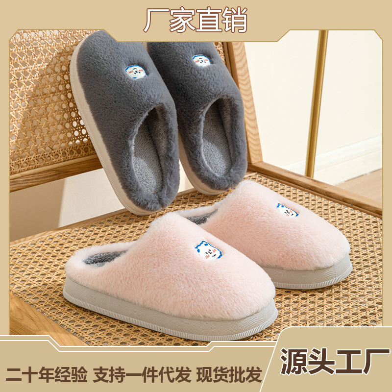 情侣拖鞋冬季家居家用室内防滑加厚保暖可爱毛绒棉拖鞋女厂家批发