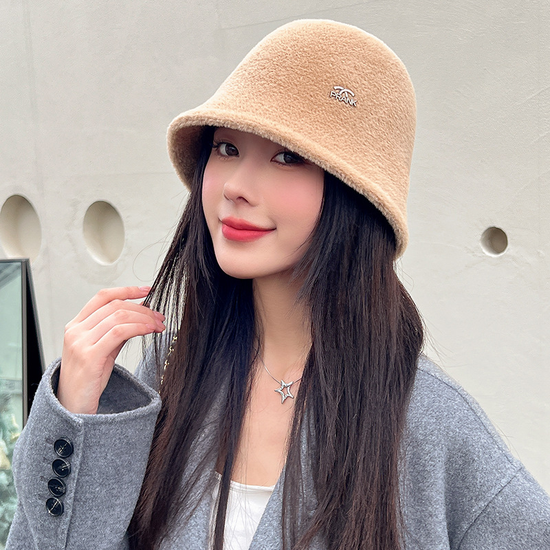 新款水桶帽秋冬女时尚保暖渔夫帽韩版秋季显脸小金属标针织水桶帽