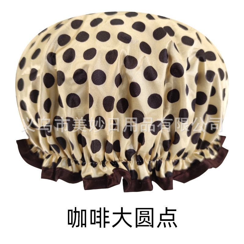 peva女士双层色丁浴帽防水加厚帽欧美印花浴室帽日用品亚马逊批发