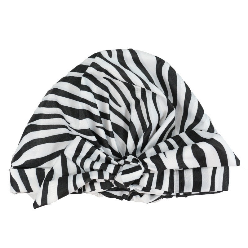 浴帽防水亚马逊松紧蝴蝶结黑白条纹淋浴帽女义乌厂家可做多款花型