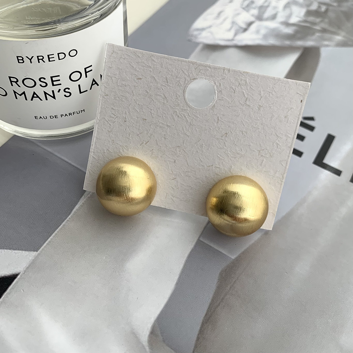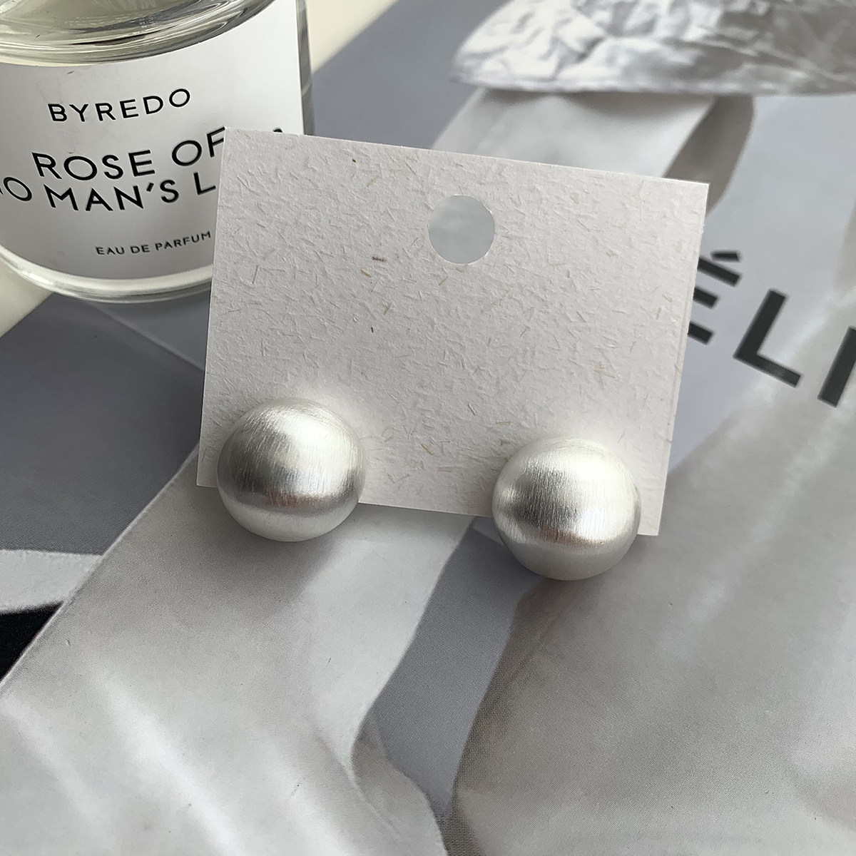 欧美金属磨砂耳钉女新款高级感饰品小众气质圆球耳环时尚百搭耳饰