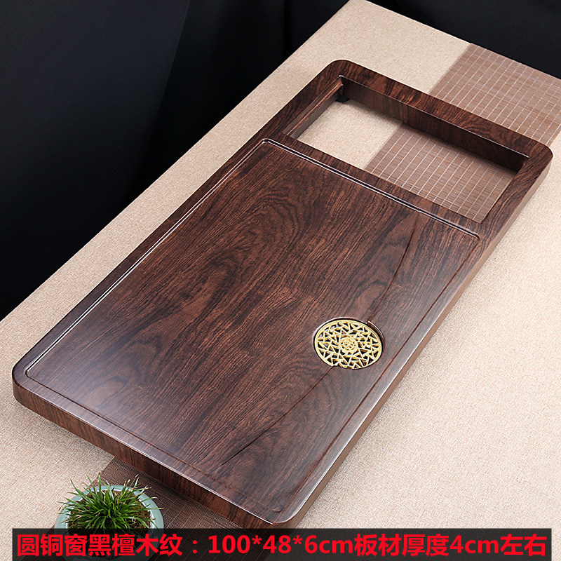圆铜窗黑檀木纹100*48单茶盘