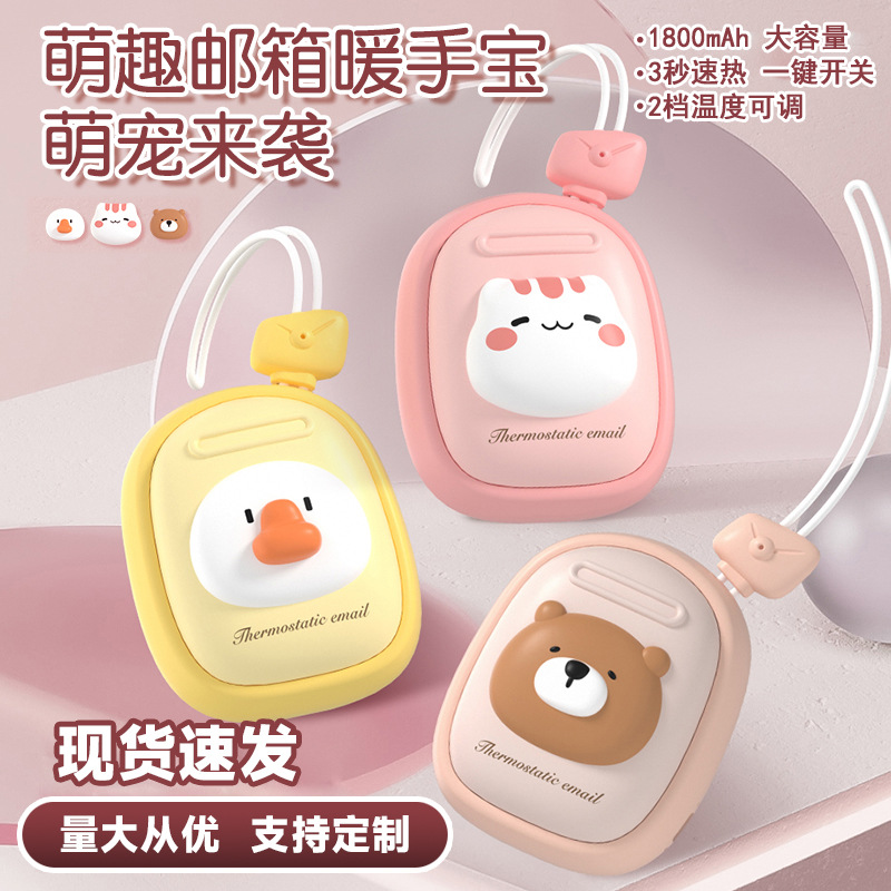 2023新品萌鸭邮箱暖手宝猫咪USB可充电便携潮玩批发活动礼品