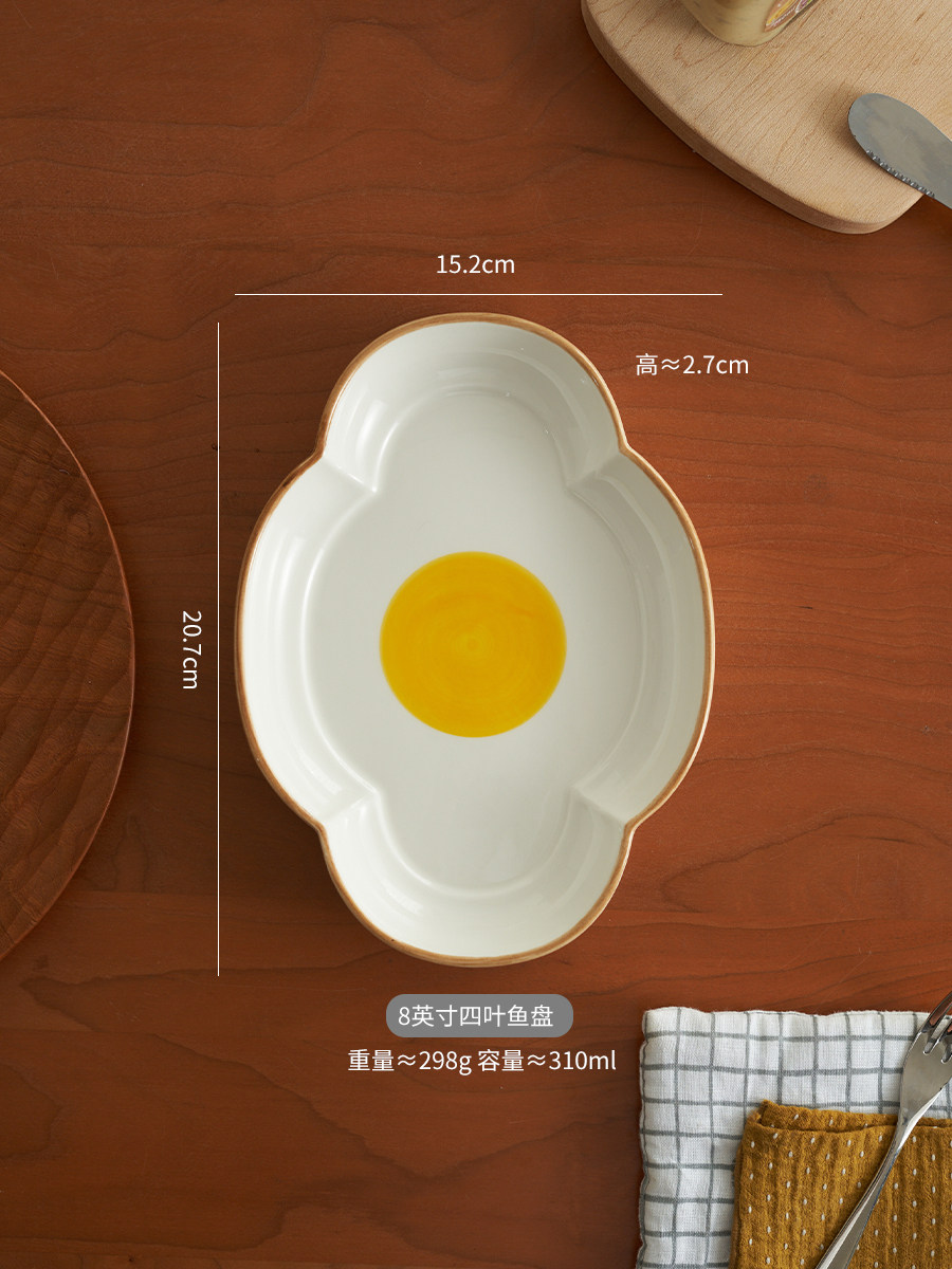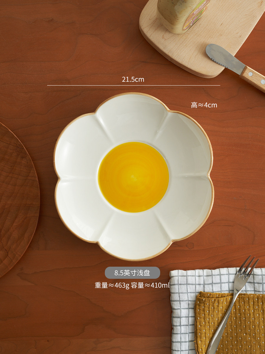 ins风太阳花鱼盘家用蒸鱼盘子陶瓷餐盘高颜值餐具8英寸