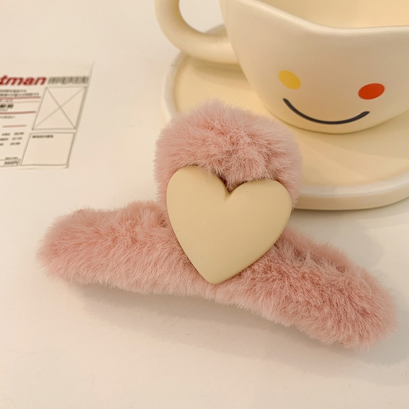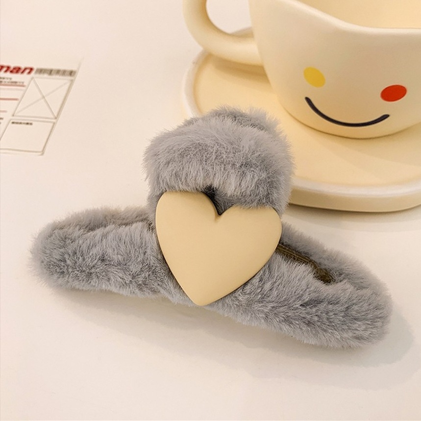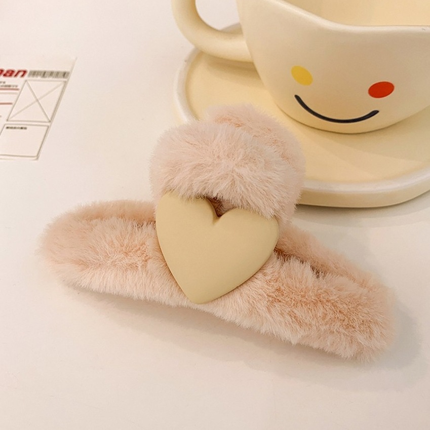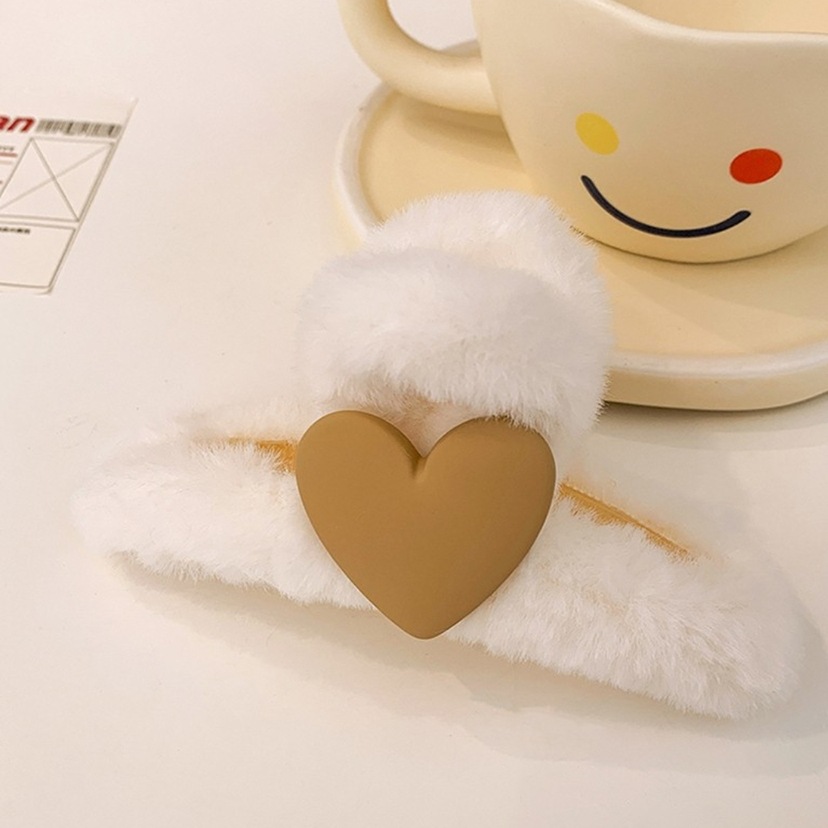 16#米白色抓夹桃心