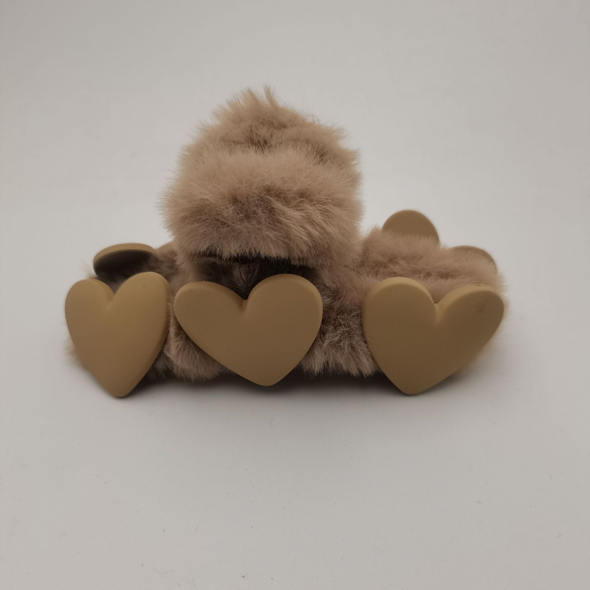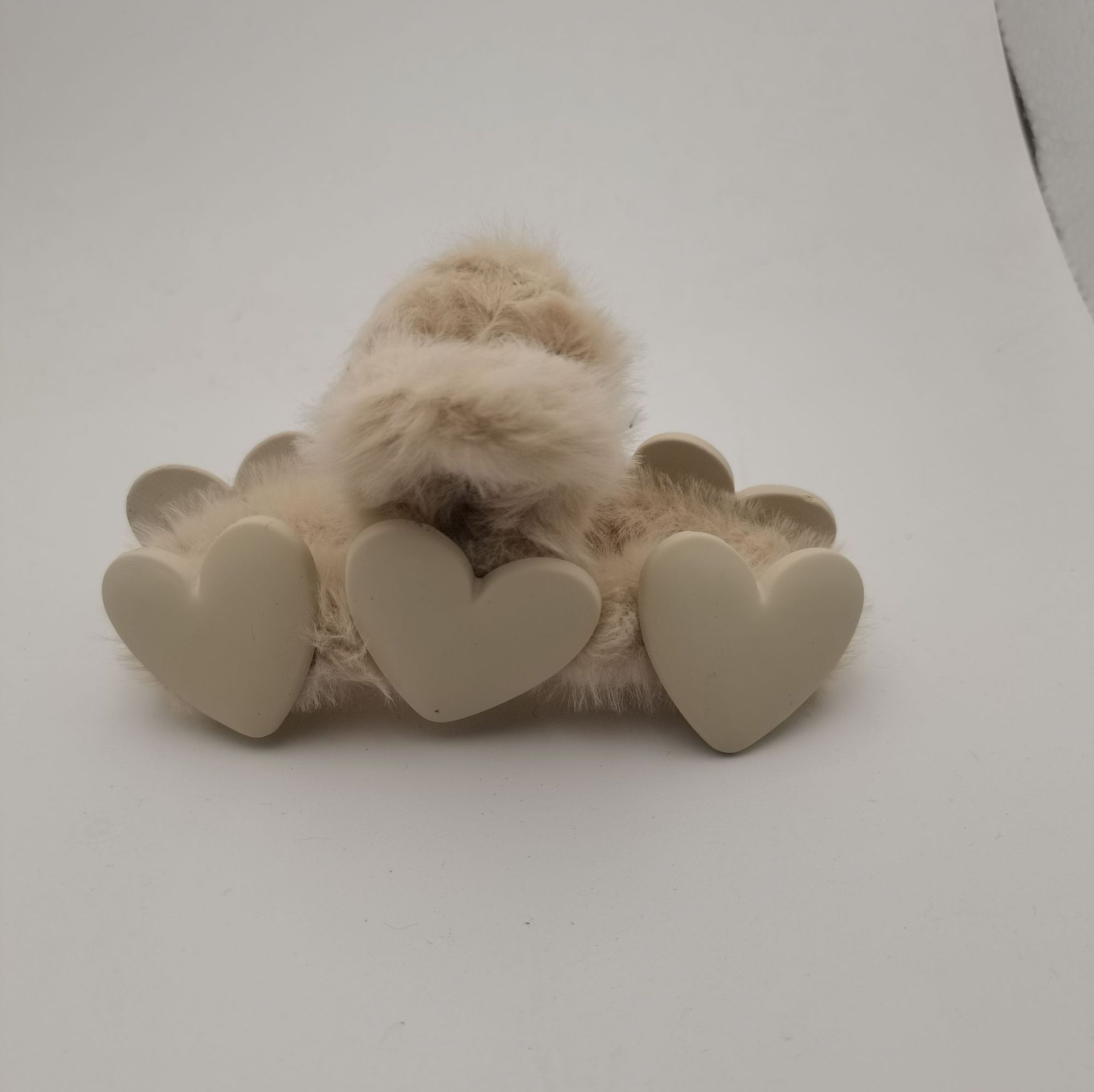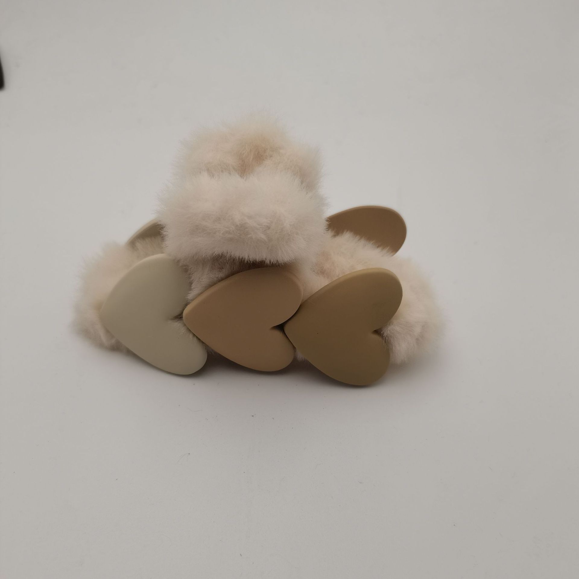 16#米白色抓夹桃心