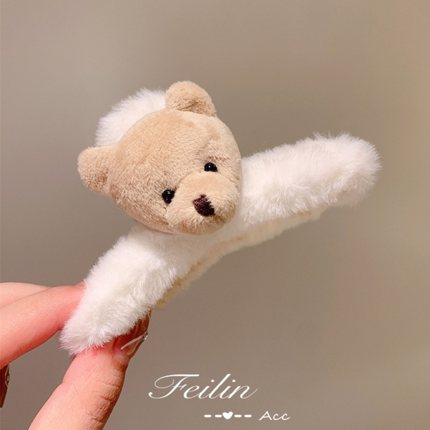 秋冬可爱小熊毛绒抓夹少女鲨鱼夹大号夹子头饰发夹网红2023年新款
