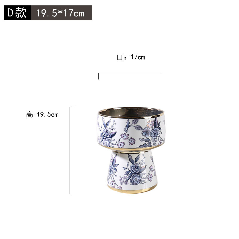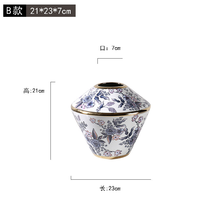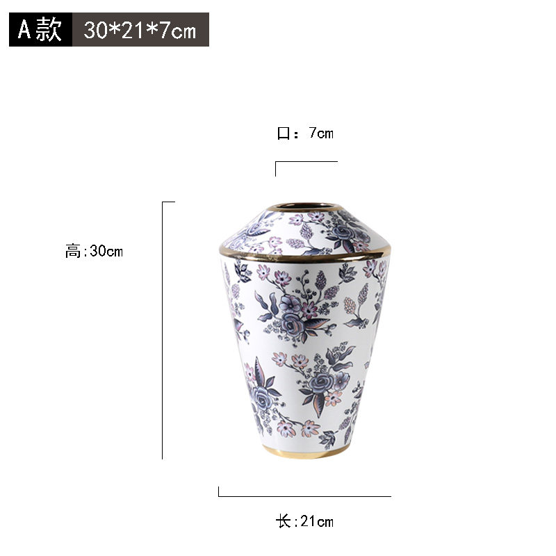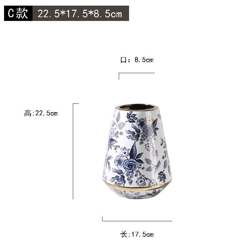 欧式轻奢青花瓷陶瓷花瓶摆件高级感样板房酒店民宿客厅餐桌花器