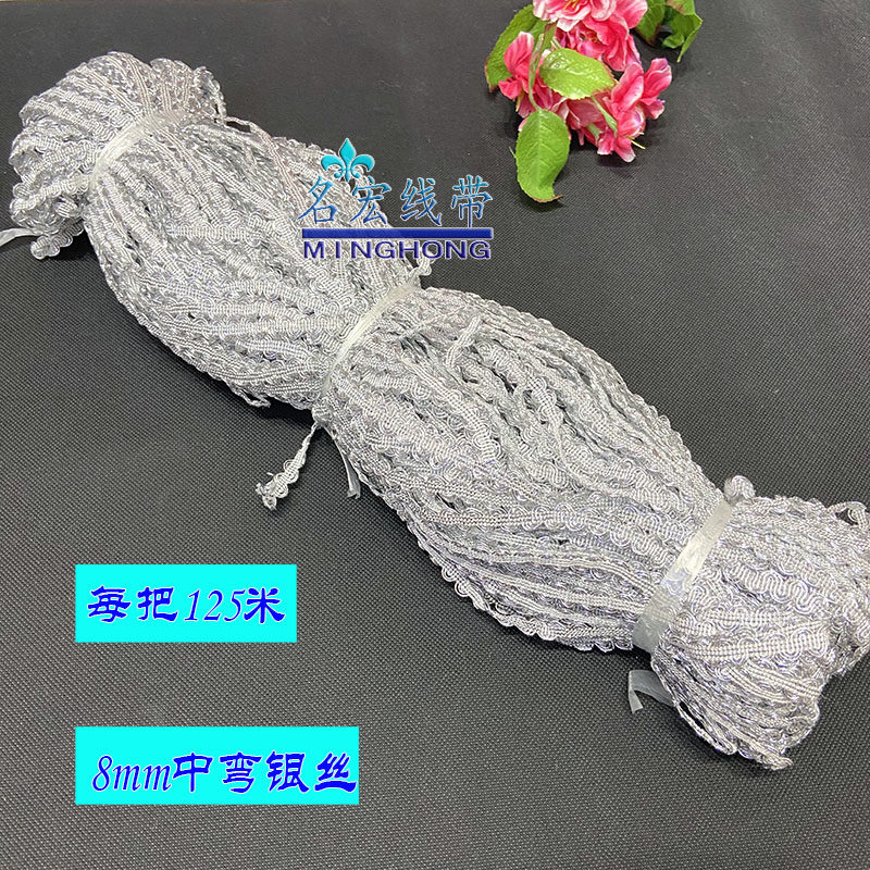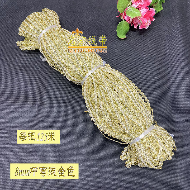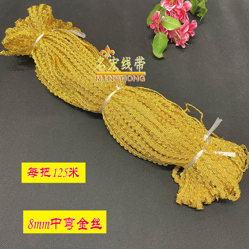中弯金丝8mm波浪S型花边镶边民族舞台服装辅料diy弯曲带扁金边绳