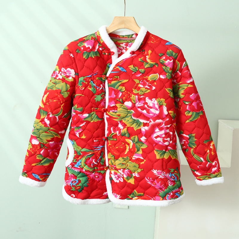 网红妈妈花棉袄冬棉服加厚大花袄民族风盘扣东北网红花女唐装棉衣