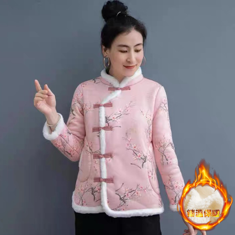 东北大花棉衣女国风唐装碎花大棉袄加绒加厚小花袄盘扣外套盘扣复