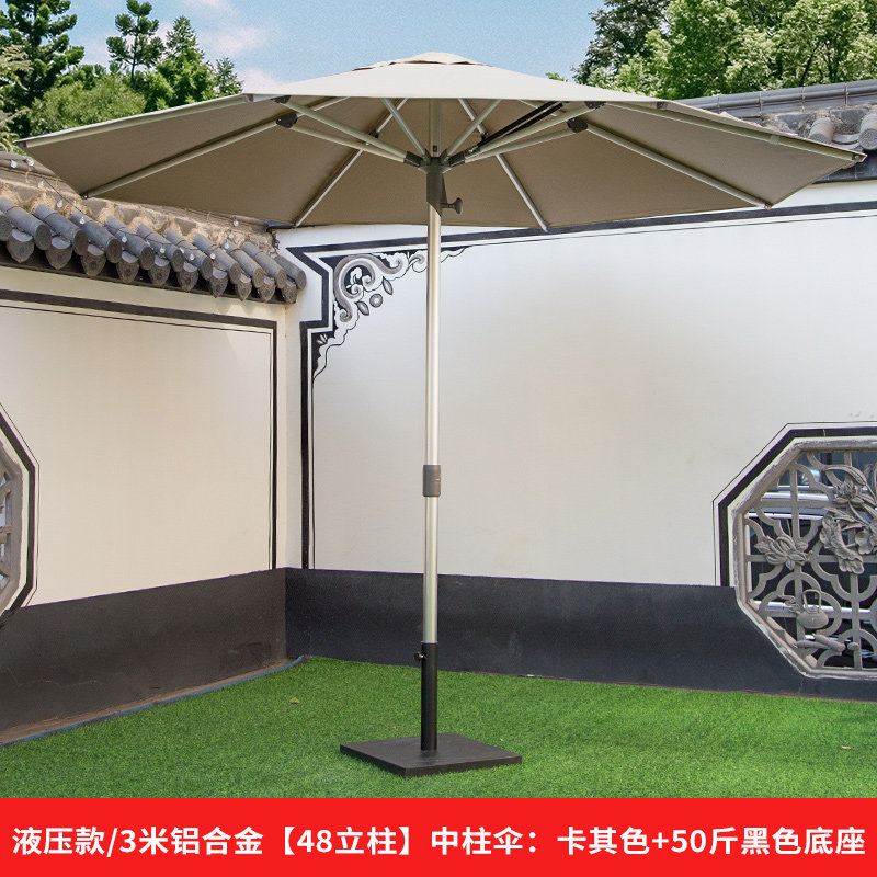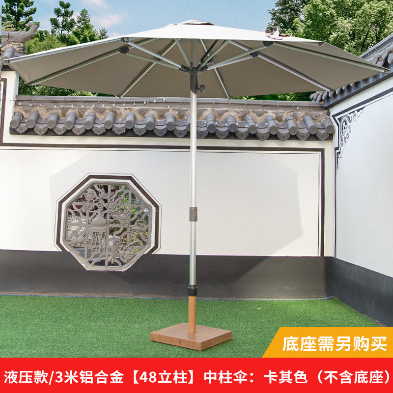 液压款/3米铝合金【48立柱】中柱伞:卡其色+50斤黑色底座