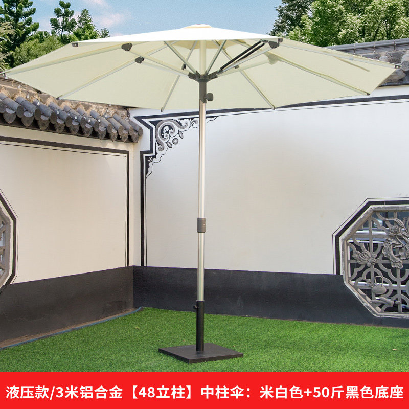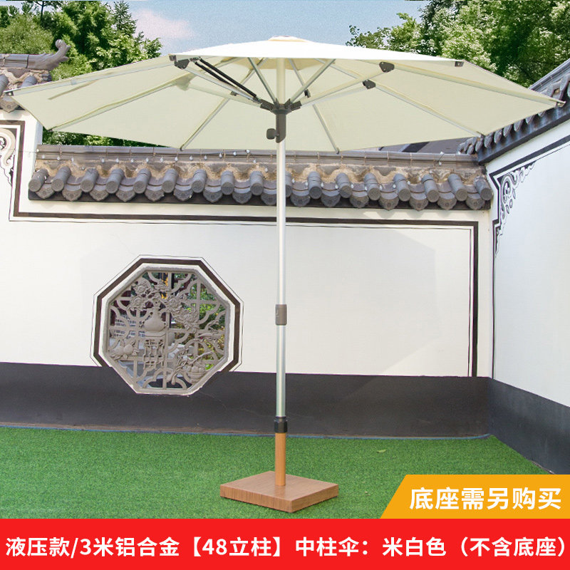 液压款/3米铝合金【48立柱】中柱伞:米白色+50斤黑色底座