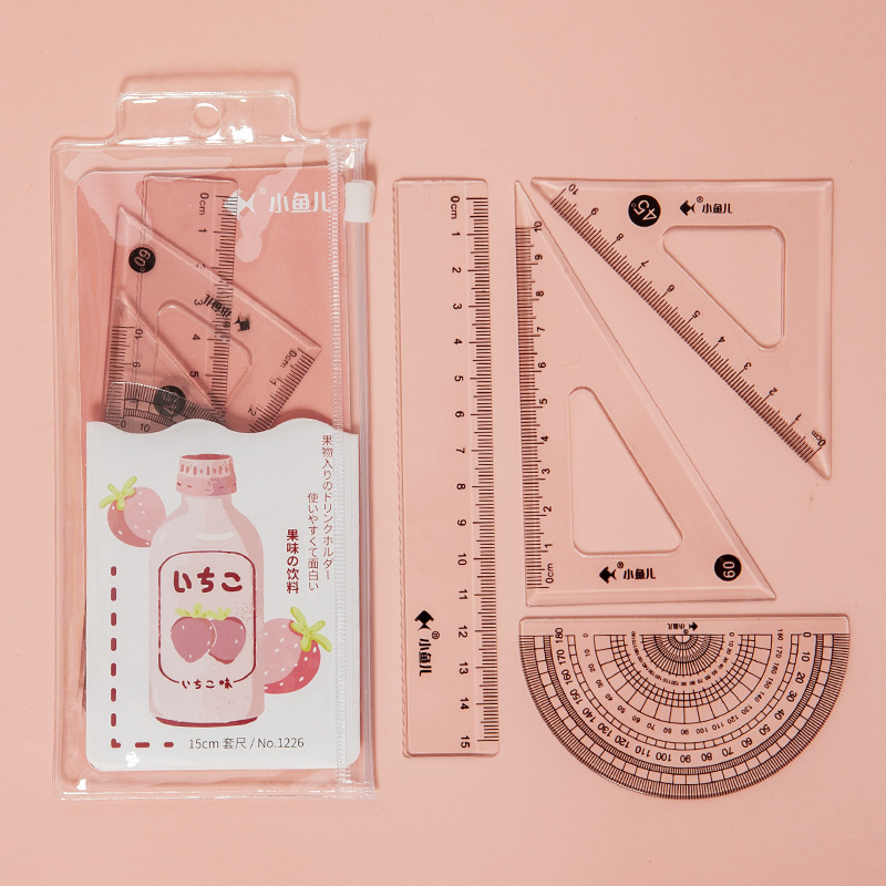小鱼儿现货套尺四件套果味饮料套尺学生用品文具套装尺子直尺热卖