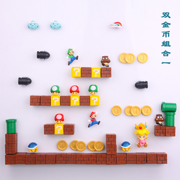 创意卡通田园超级玛丽冰箱贴装饰磁贴早教留言贴内嵌式中国风