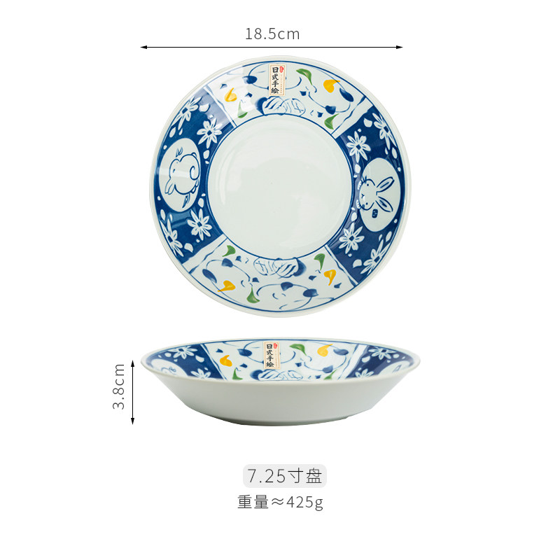 日式手绘祥瑞兔陶瓷复古兔餐具套装家用早餐盘圆盘菜盘