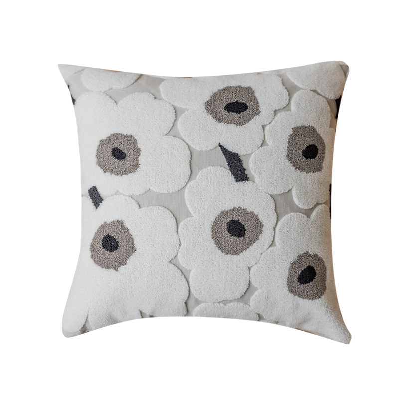 北欧简约田园花卉布艺抱枕靠垫毛巾绣床头靠背腰垫民宿样板间卧室