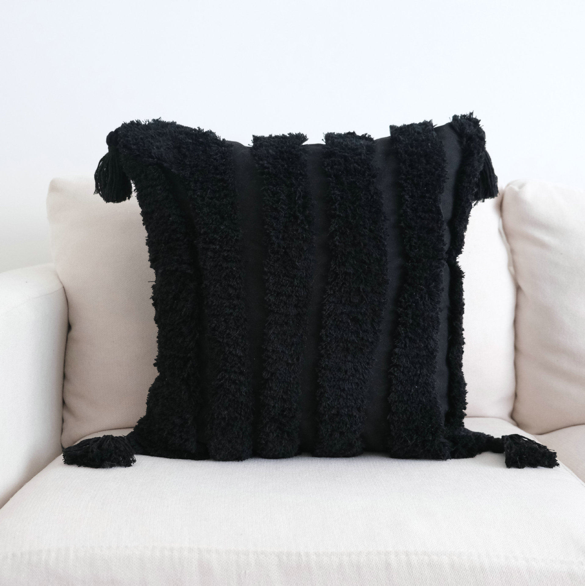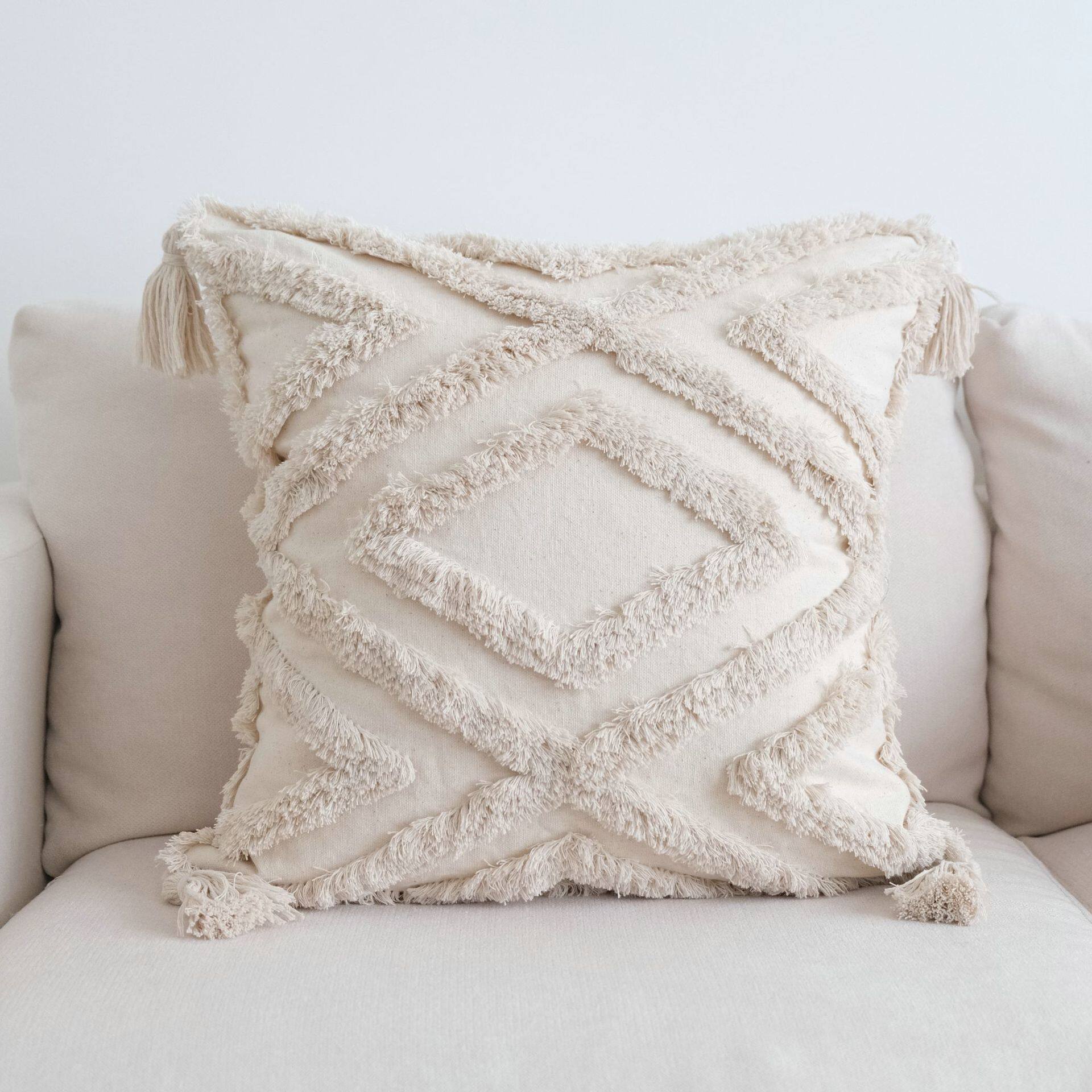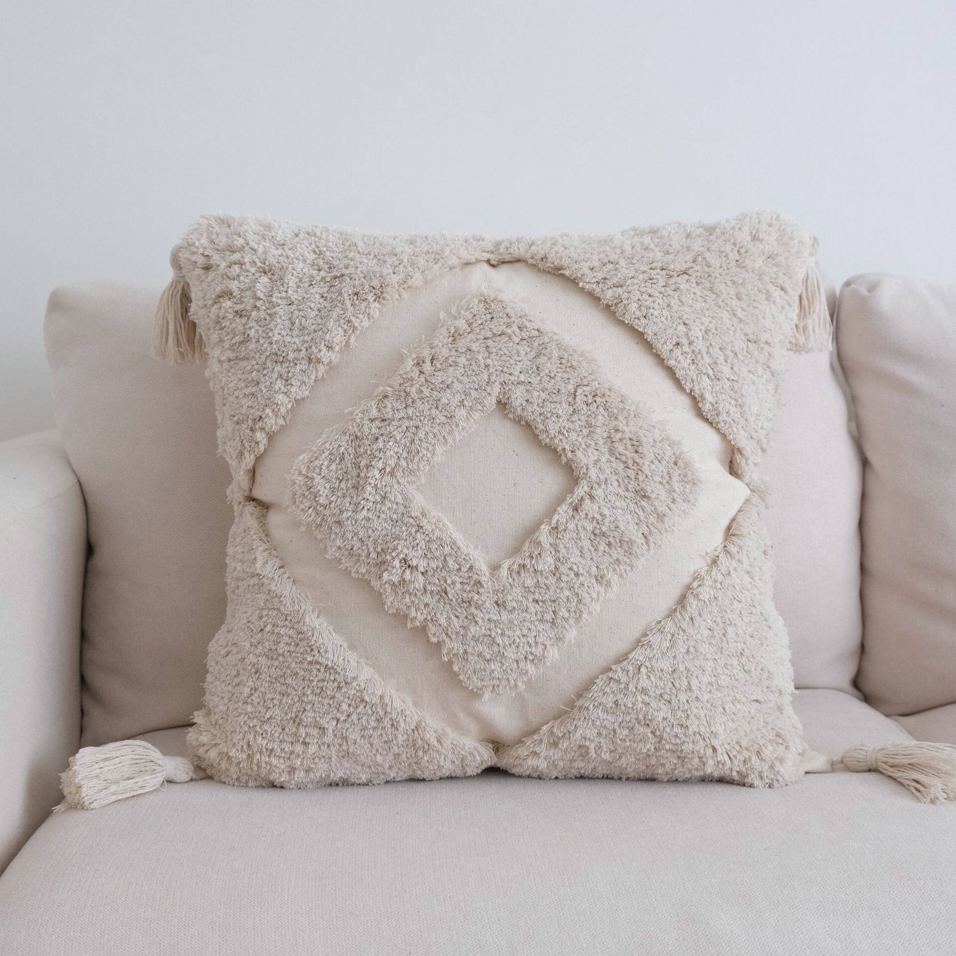 ins风撞色簇绒抱枕流苏枕套客厅沙发靠垫编织轻奢靠枕跨境抱枕套