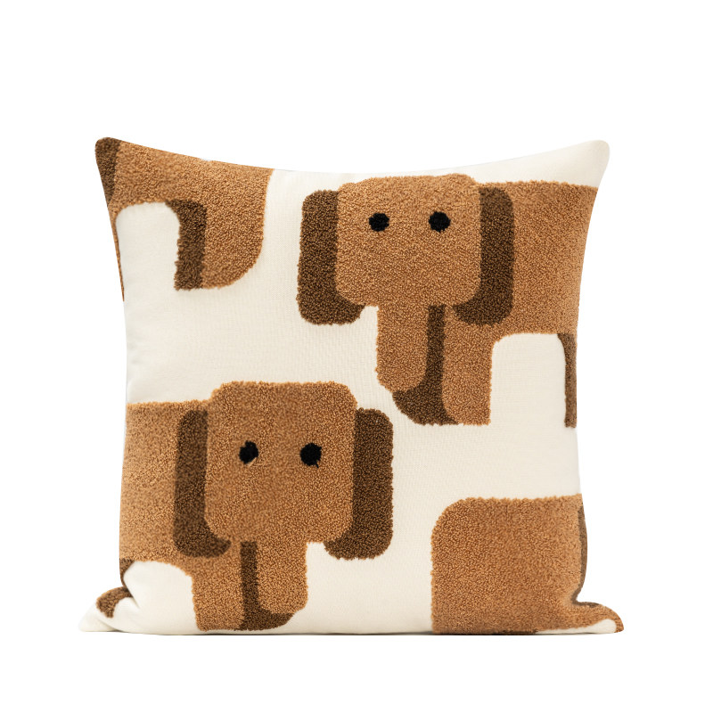 新品咖色毛巾绣小象可爱卡通抱枕靠垫坐垫客厅沙发卧室靠枕可拆洗