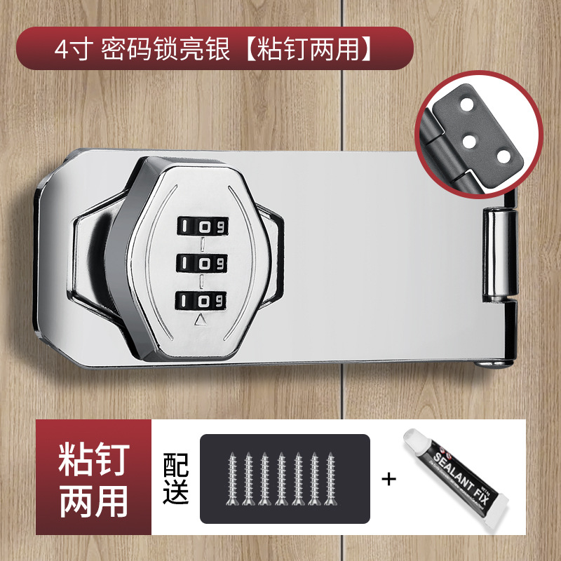4寸三孔密码锁银色【送免钉胶/螺丝】