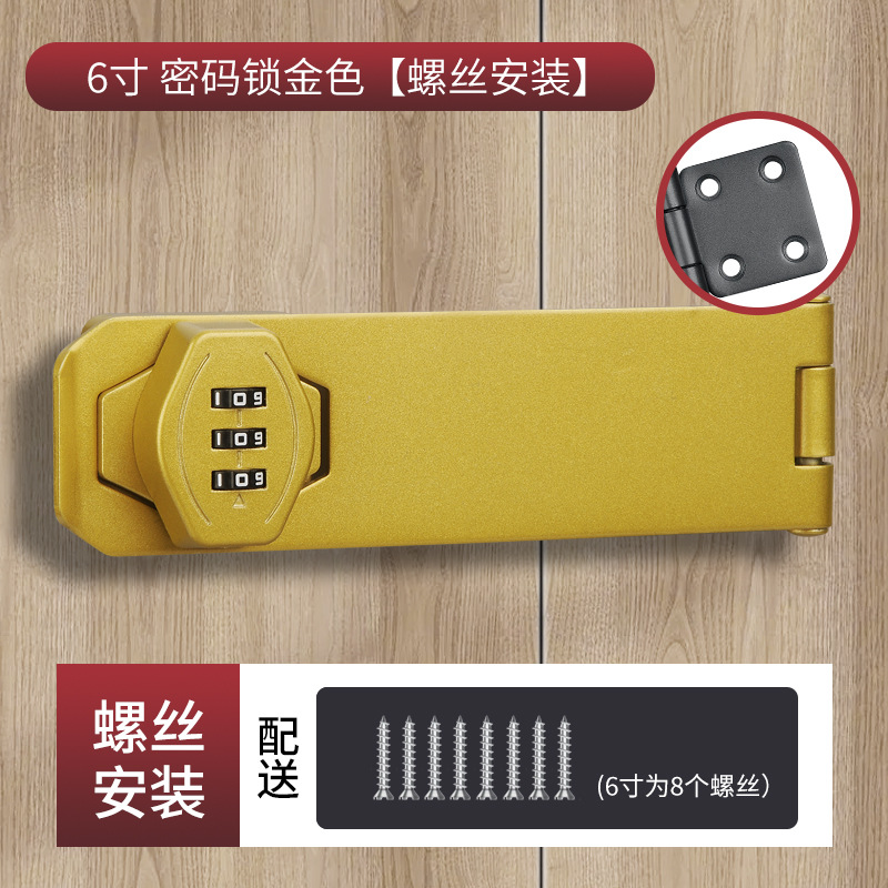 6寸四孔密码锁金色【送免钉胶/螺丝】