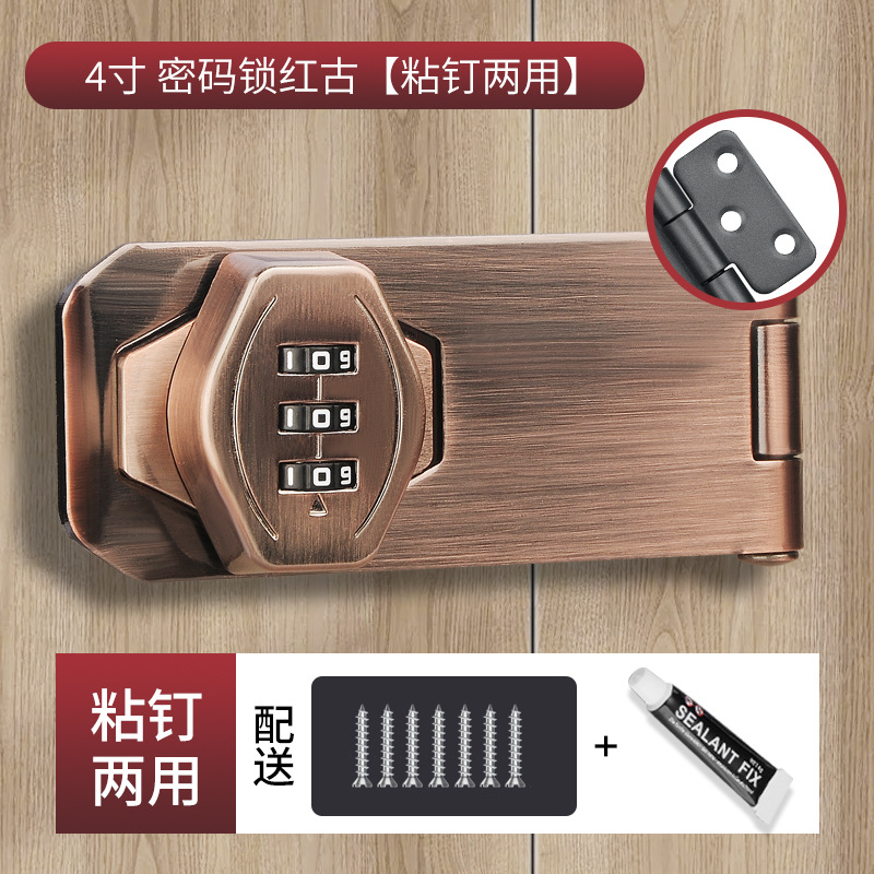 4寸三孔密码锁红古铜【送免钉胶/螺丝】