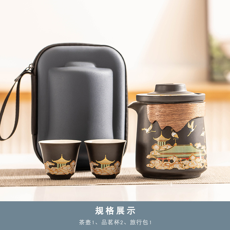 雅黑《瑞鹤呈祥》一壶二杯旅行茶具