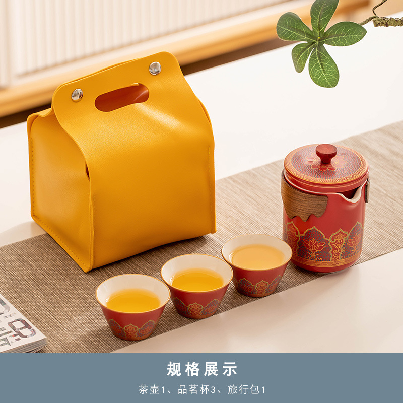 玫红《古茗》一壶三杯+黄皮包