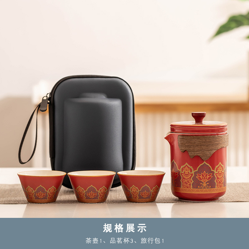 玫红《古茗》一壶三杯+便携包