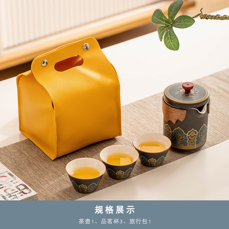 雅黑《古茗》一壶三杯+黄皮包