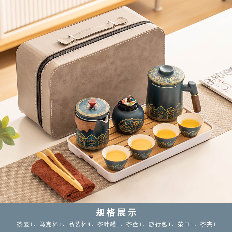 _霁蓝《古茗》一壶4杯+茶叶罐+办公杯+茶盘+旅行包(送茶巾茶夹)